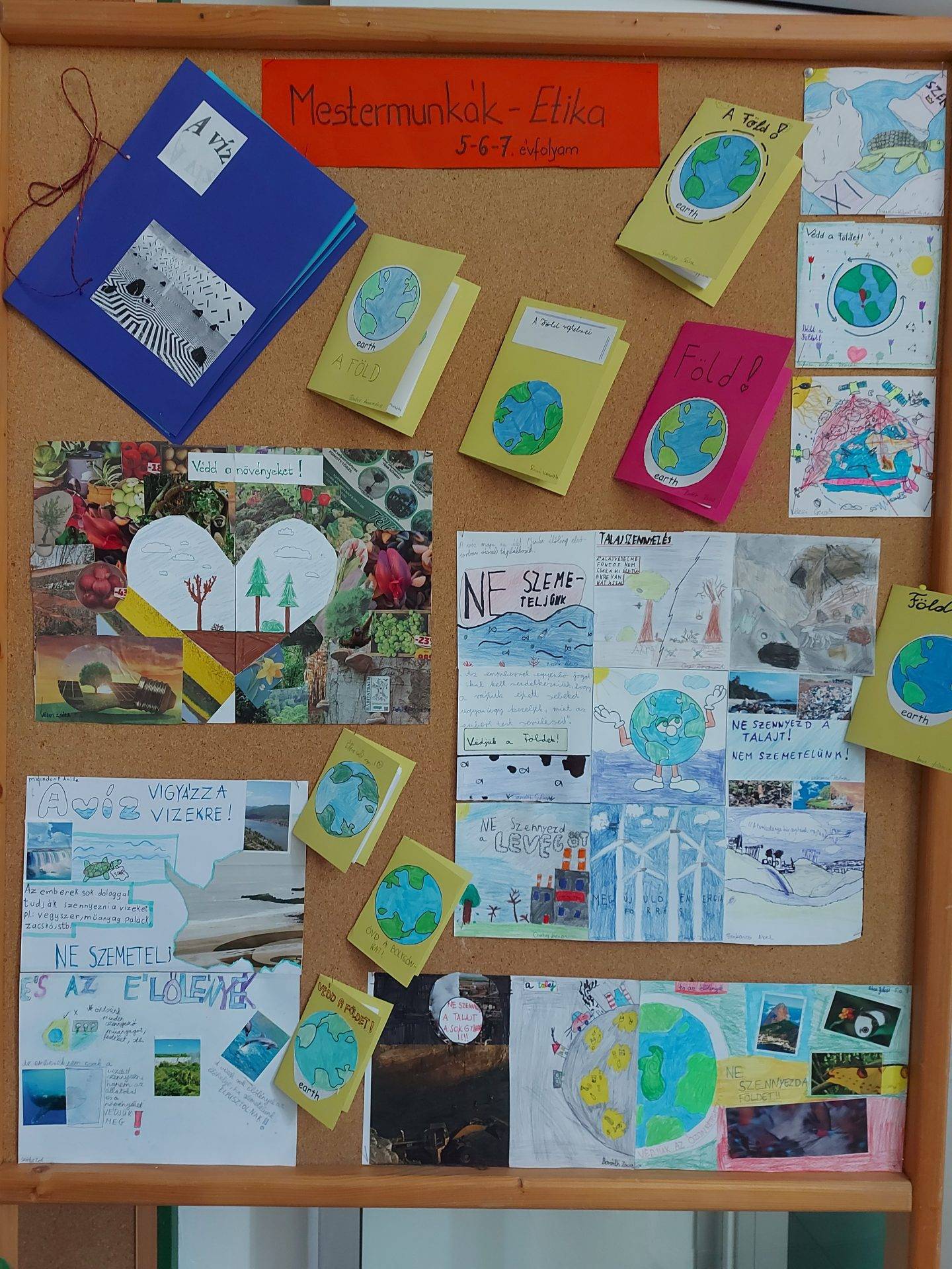 Fenntartható boldogság és a fenntarthatóság jegyében készítettünk feladatokat. Föld minikönyveket készítettünk, melybe összeírtuk és lerajzoltuk mitől válik a Föld boldoggá, mit tudok a Földünkről és miért kell megóvnunk. Plakátokat készítettünk a környezetünk védelmével kapcsolatban valamint a környezetünkben lévő növények és vizeink megóvása érdekében. Nagyon szuper alkotások születtek.