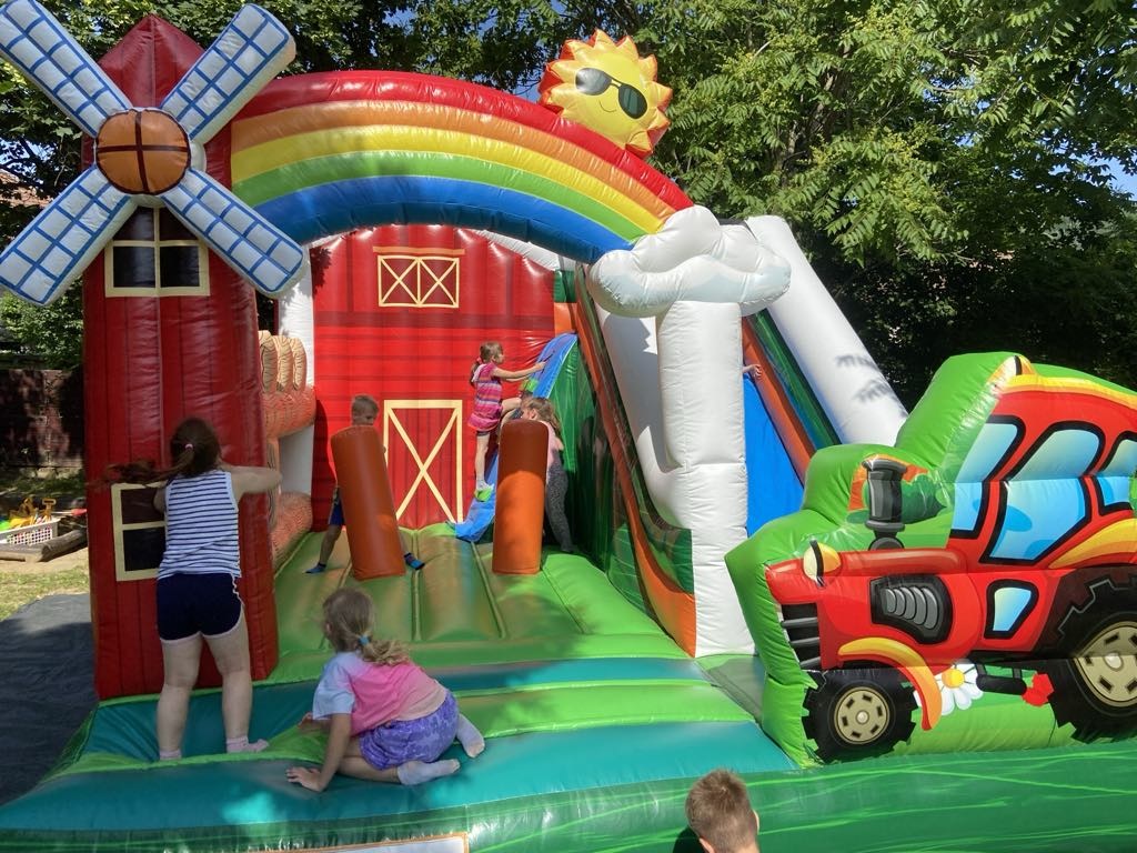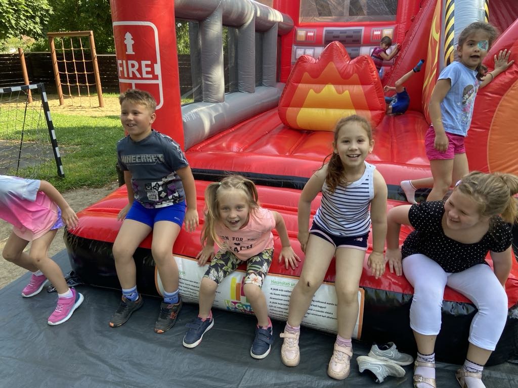 Hétfőn elmentünk fagyizni, kedden vonattal kirándultunk, szerdán kerékpároztunk – sportoltunk, csütörtökön ugráló vár, pénteken pedig az uszodában lubickoltunk.
