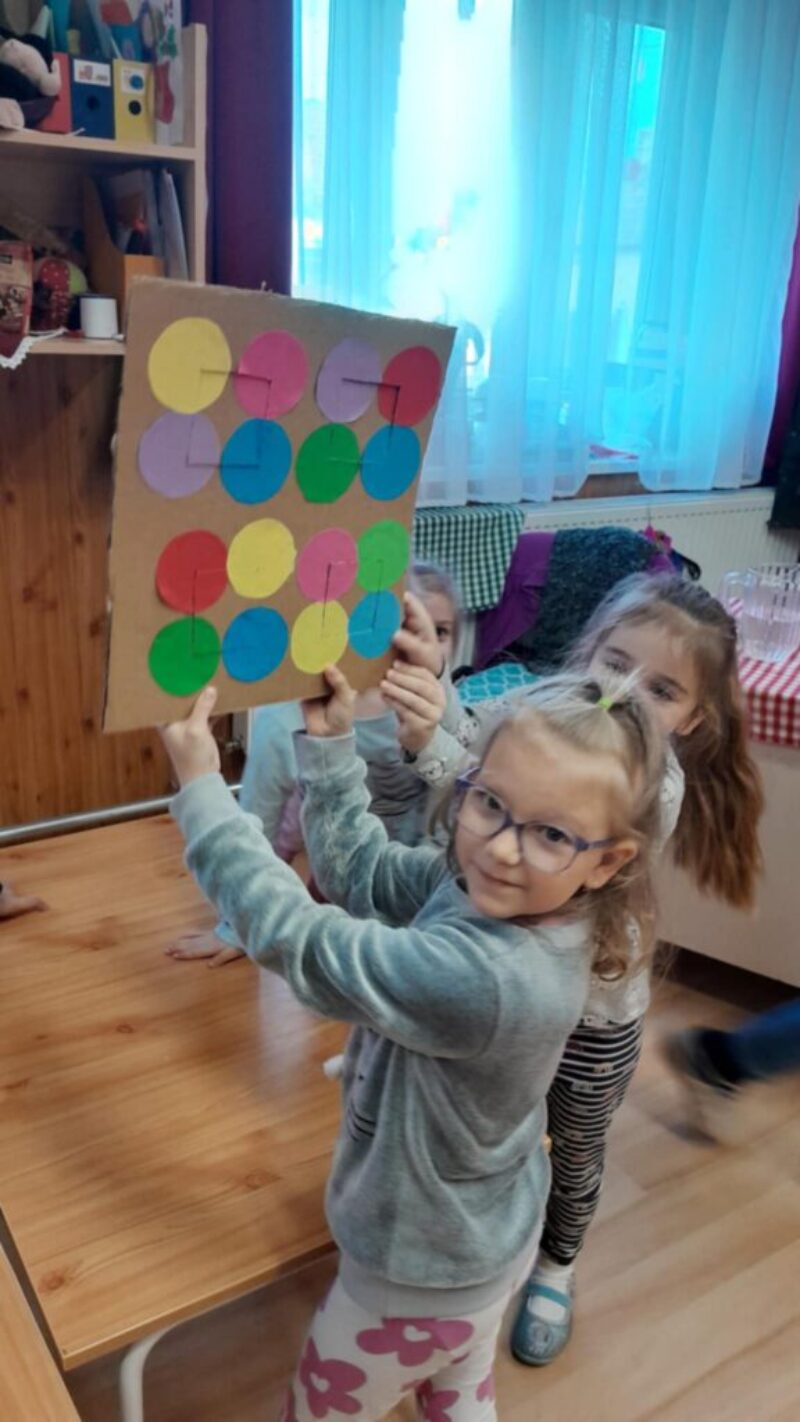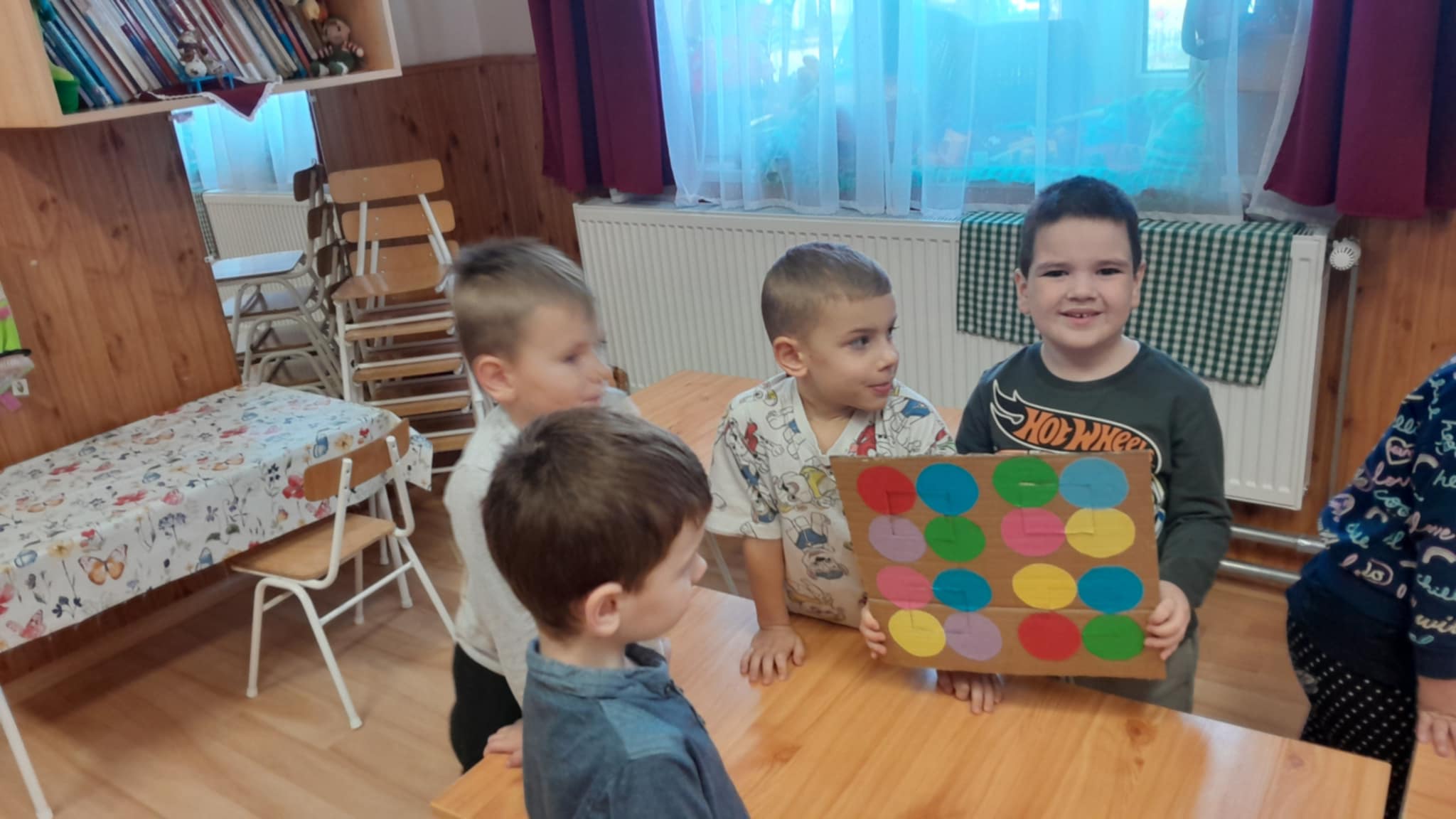 A héten farsangra készültünk, és a színek birodalmába barlangoltunk. A gyerekekkel megbeszéltük, hogy miért, és hogyan vigyázhatunk a környezetünkre. Egy régi kartondobozból közösen készítettünk egy puzzle játékot, majd a fiúk, és a lányok versenyeztek, hogy ki tudja gyorsabbam kirakni . Nagyon tetszett nekik a játék, és a hét folyamán otthon, hulladékokból készített játékokat hoztak be a gyerekek ( volt aki kupakból készített társast, más pedig műanyag palackból csinált ügyességi játékot).