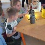A Fény-árnyék projektünk során az egyik lelkes apuka, aki maga is tanár, felajánlotta, hogy bemutatja lámpagyűjteményét. Közben a világítás fejlődését is bemutatta képek, a gyűjtött tárgyai és vetítés segítségével. Ahogy a világítás a tűztől egészen a ledes lámpákig fejlődött, úgy állítottuk párhuzamba a boldogság fejlődését. Ugyanis csak úgy tudjuk fenntartani, ha folyamatosan ötletelünk, dolgozunk rajta és apró, újszerű dolgokat találunk ki, hogy boldogok maradjunk.