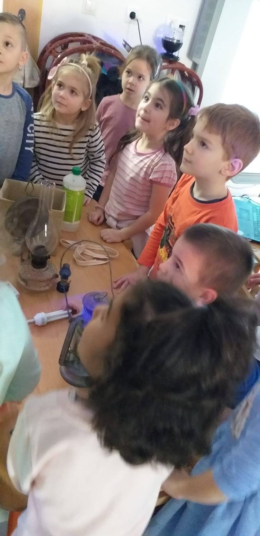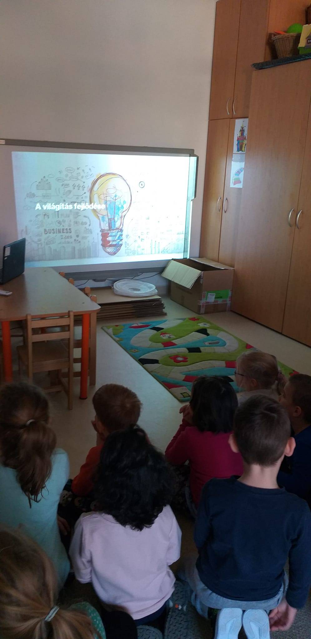 A Fény-árnyék projektünk során az egyik lelkes apuka, aki maga is tanár, felajánlotta, hogy bemutatja lámpagyűjteményét. Közben a világítás fejlődését is bemutatta képek, a gyűjtött tárgyai és vetítés segítségével. Ahogy a világítás a tűztől egészen a ledes lámpákig fejlődött, úgy állítottuk párhuzamba a boldogság fejlődését. Ugyanis csak úgy tudjuk fenntartani, ha folyamatosan ötletelünk, dolgozunk rajta és apró, újszerű dolgokat találunk ki, hogy boldogok maradjunk.