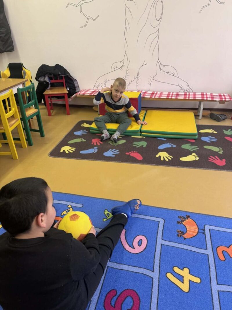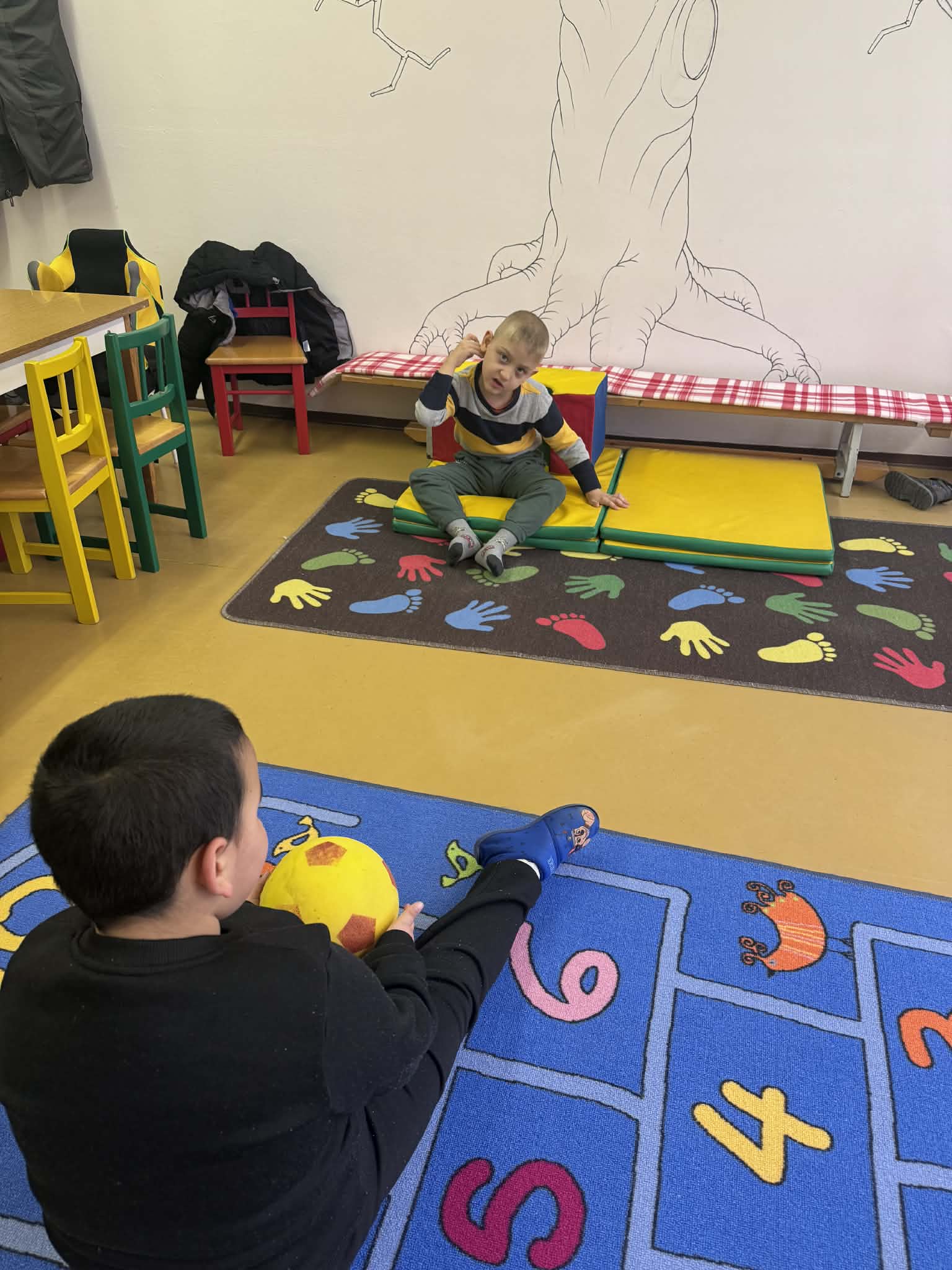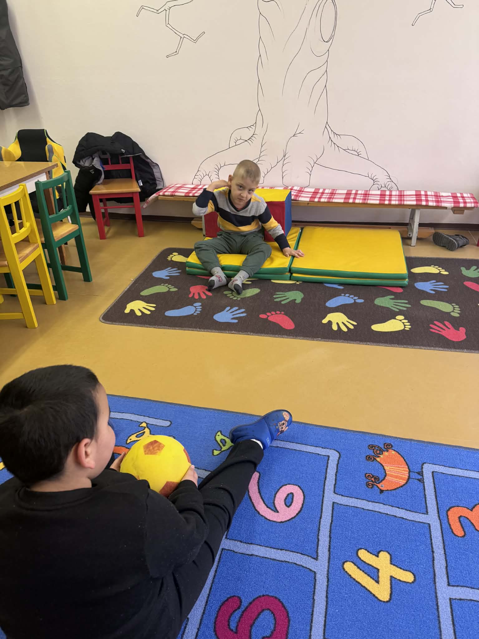 A mai Boldogságóra során a megküzdési stratégiák témakörét dolgoztuk fel a gyerekekkel egy egyszerű, nyugodt, mozgásos tevékenység keretében. A foglalkozás célja az volt, hogy a gyerekek megtapasztalják, hogyan tudnak kapcsolódni egymáshoz, figyelni a másikra, valamint hogyan lehet a feszültséget és az izgalmat egy szabályozott, biztonságos játéktevékenységen keresztül levezetni. A ráhangolódás során rövid beszélgetést kezdeményeztem arról, hogy mit szoktunk csinálni akkor, amikor izgulunk, várakozunk, vagy egy kicsit feszültebbek vagyunk. A gyerekek a saját kommunikációs szintjüknek megfelelően reagáltak, több esetben mimikával, mutatással és rövid válaszokkal jelezték gondolataikat. A fő tevékenység során a gyerekek labdát gurítottak egymásnak. A játék egyszerű szabályokra épült, mégis jól támogatta a figyelem fenntartását, a szemkontaktus kialakulását, valamint az egymásra hangolódást. A labda átgurítása során megfigyelhető volt, hogy a gyerekek egyre magabiztosabban várták a sorukat, és egyre nyugodtabban kezelték a várakozással járó helyzeteket. A tevékenység lehetőséget adott arra, hogy a gyerekek megéljék: a lassítás, a megállás, a kivárás és az egymásra figyelés segíthet a belső feszültség csökkentésében. A labda gurítása közben többször megerősítettem számukra, hogy nyugodtan lehet várni, és nem baj, ha egy pillanatra megállunk.A foglalkozás végén rövid megnyugtató zárást alkalmaztam. A gyerekek leültek a szőnyegre, néhány lassú légzéssel és halk zenével segítettem az ellazulást. Rövid, egyszerű mondatokkal tudatosítottam bennük, hogy amikor játszunk, várunk és figyelünk egymásra, az segít megnyugodni.