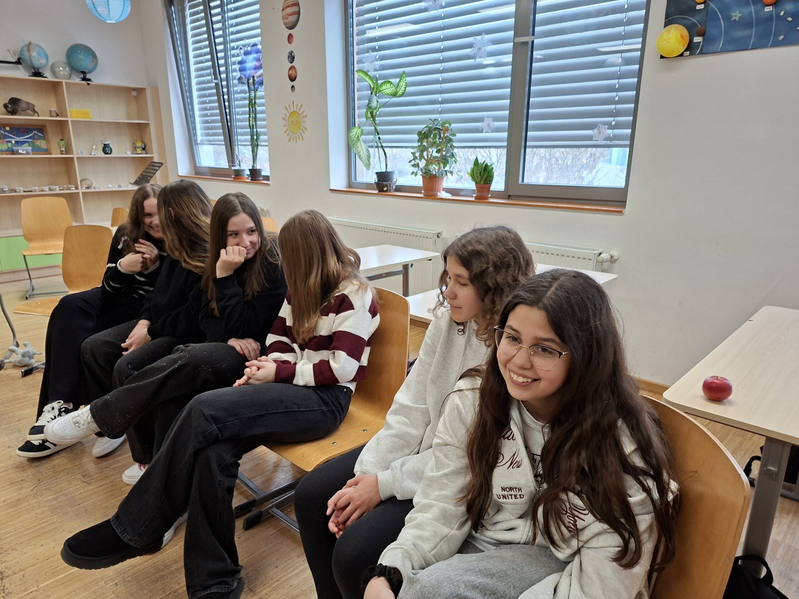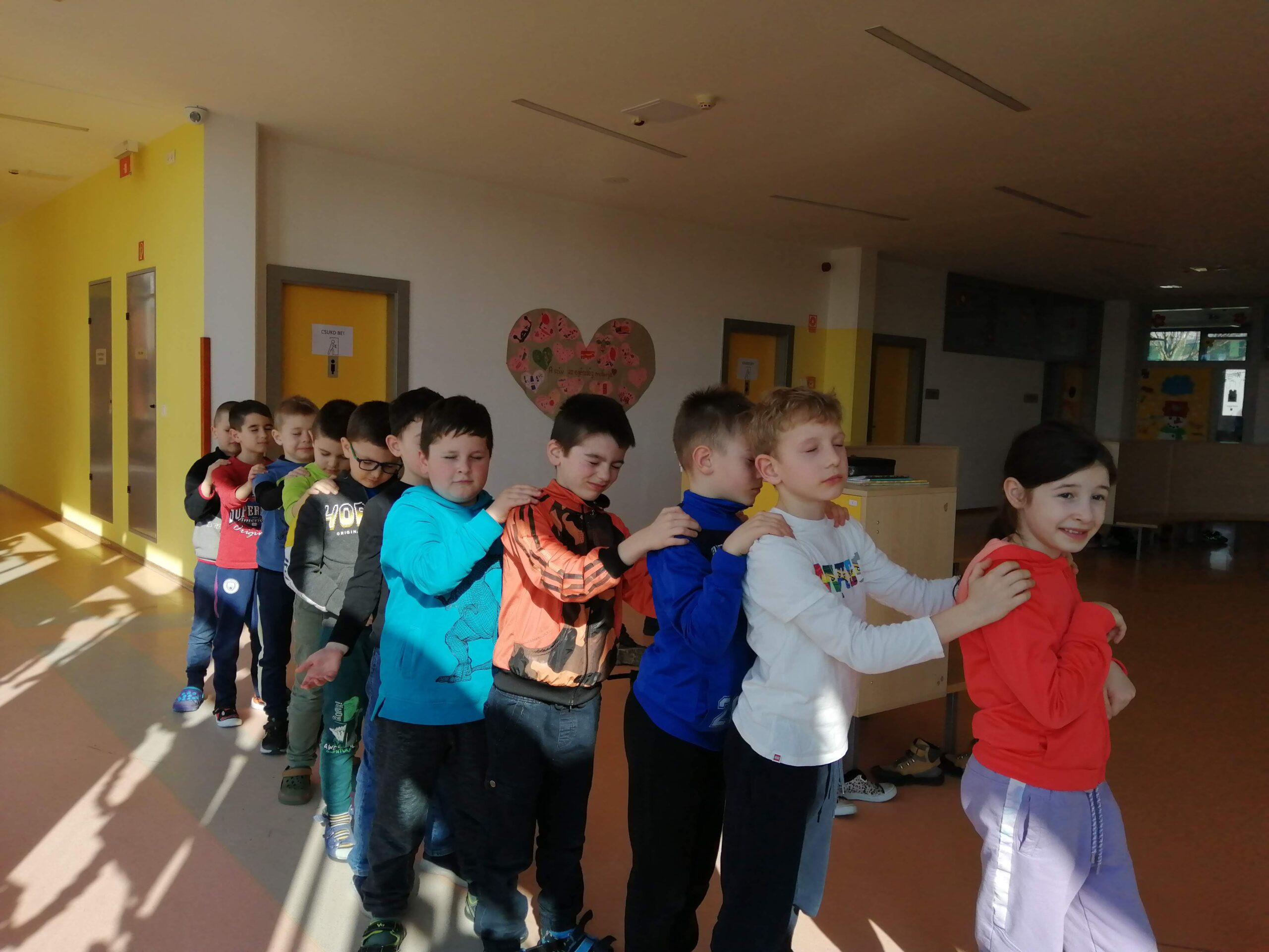 Boldogság szakkörön a foglalkozást nehezített gimnasztikával kezdtük párban. Végig csukott szemmel kellett végrehajtani az egyes gyakorlatokat. Majd a „vak kígyó” bejárta a zsibongót és a tantermet is.