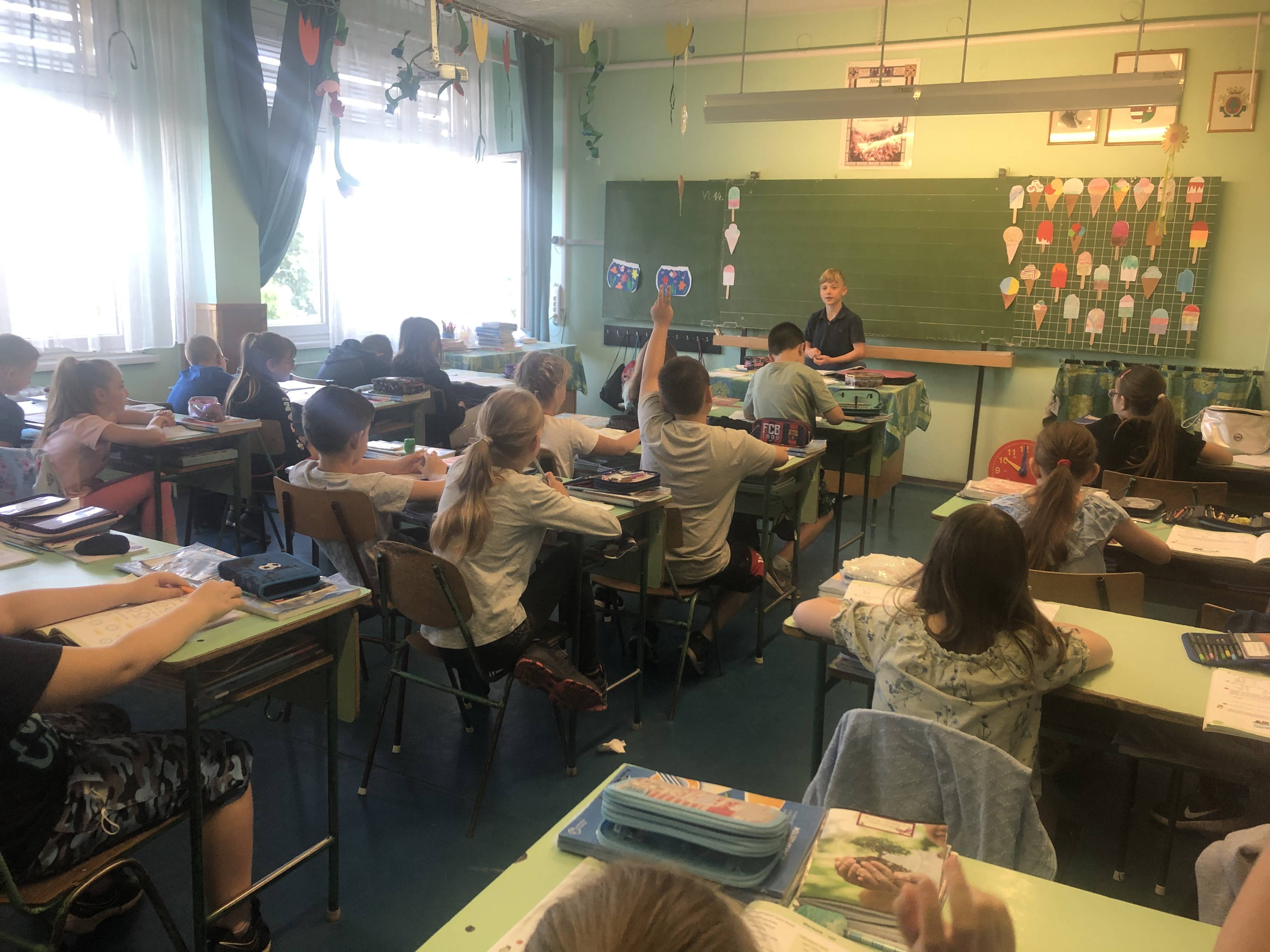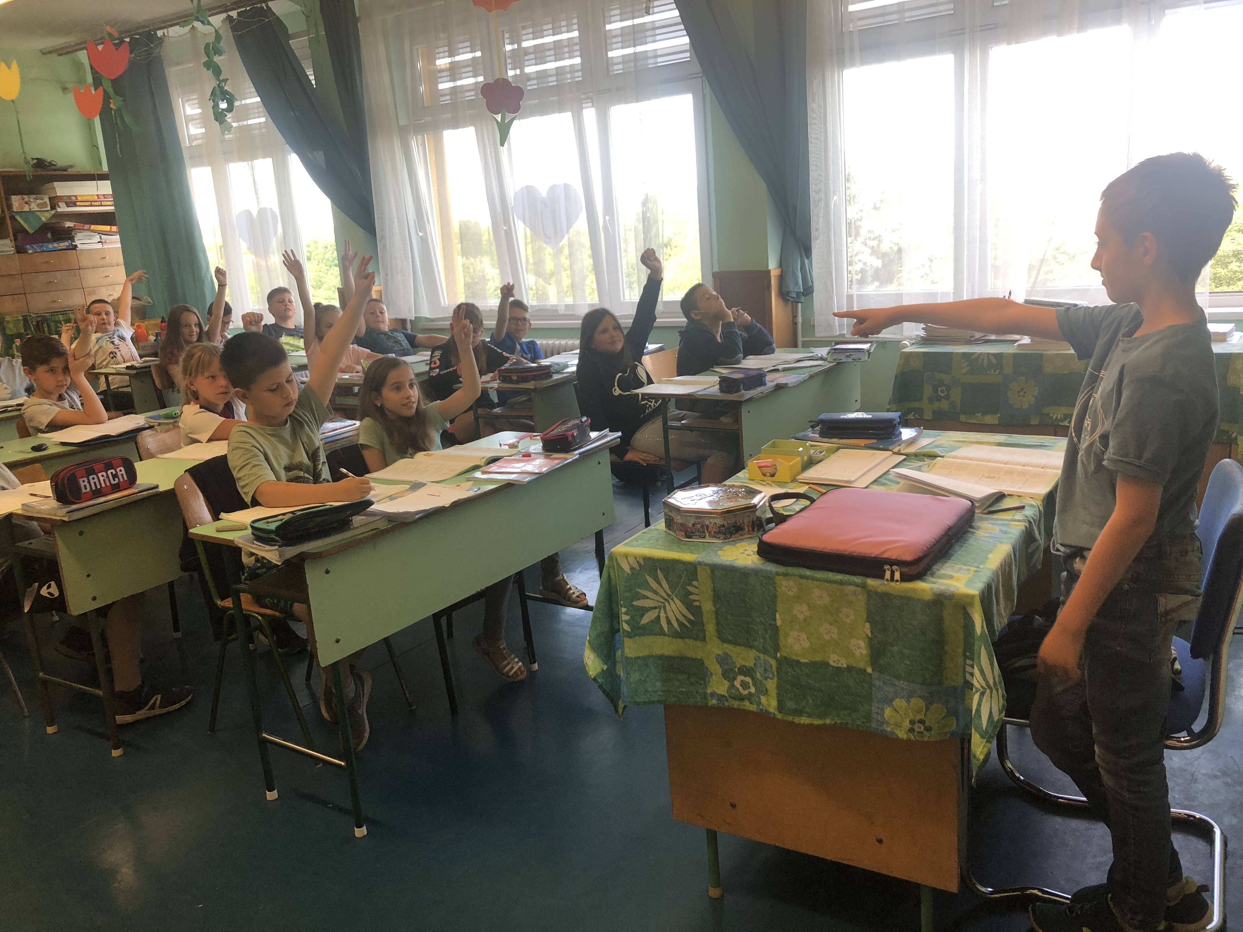 A gyerekek voltak ezen a napon a tanárok. Volt matek, ének és magyar óra.