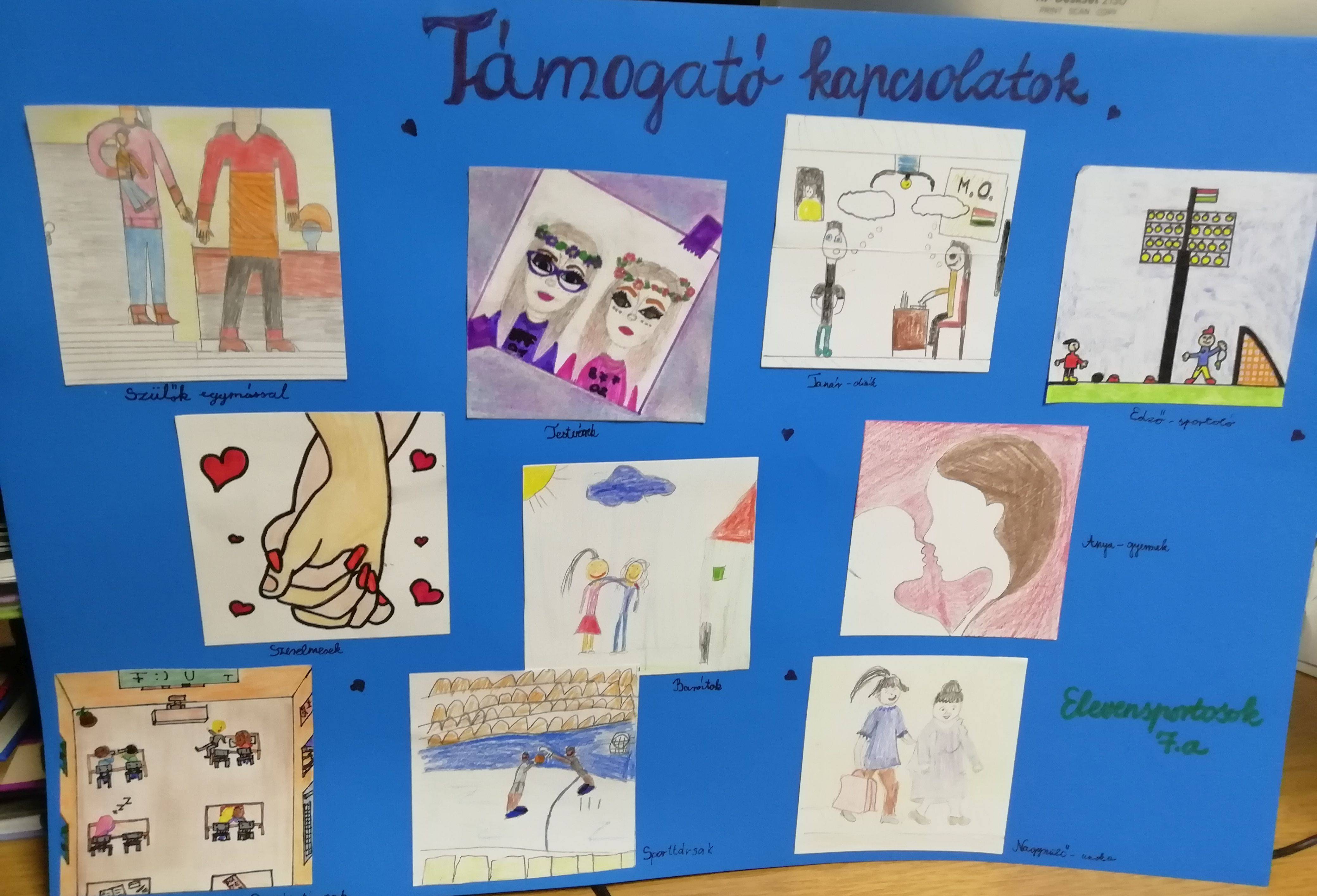 A „Fotóalbum” c. feladat lehetőséget teremtett, hogy összegyűjtsük és lerajzoljuk támogató emberi kapcsolatainkat, majd megbeszéltük, hogy mit tehetünk azok ápolásáért.