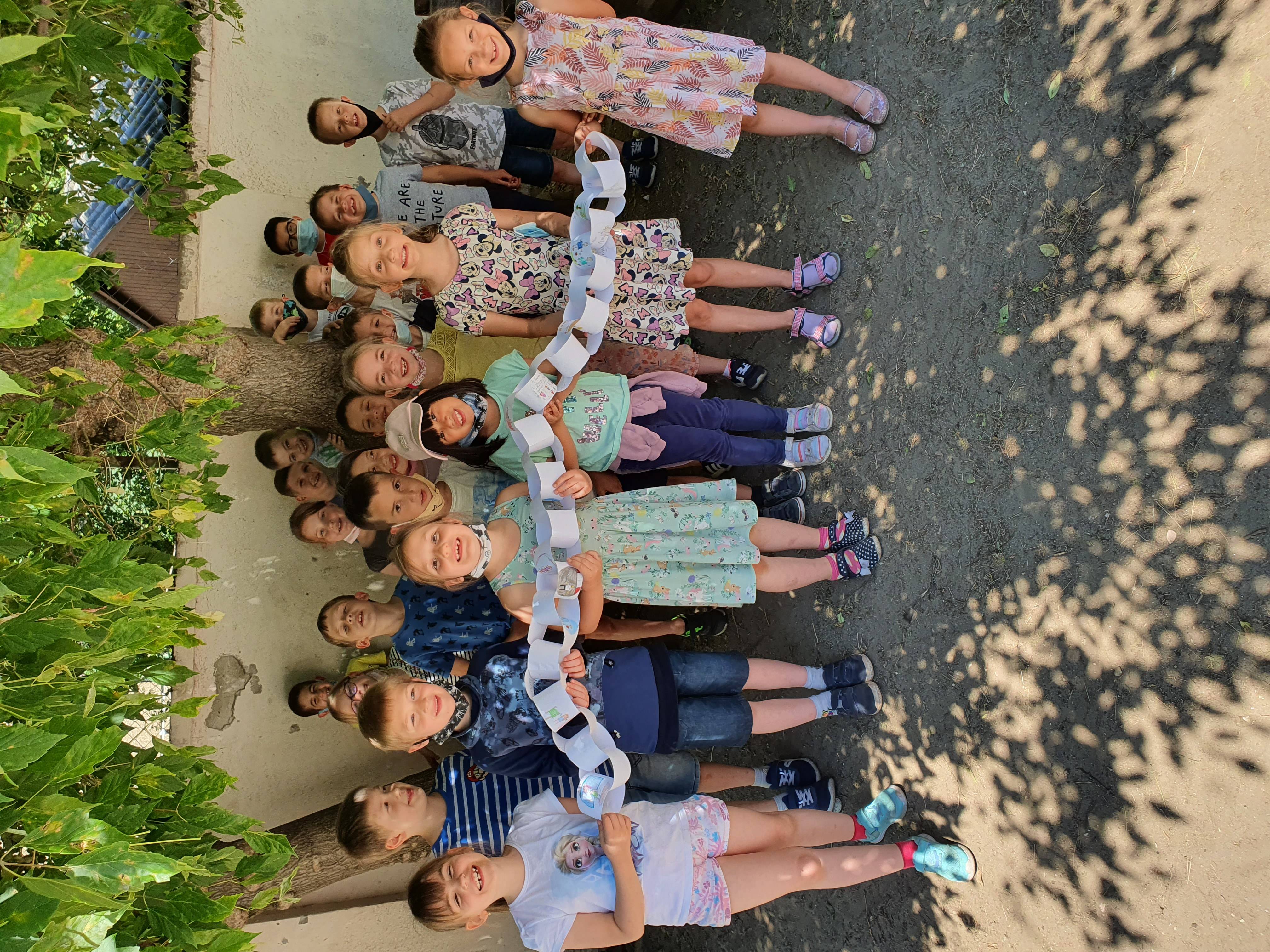 A júniusi feladatok közül nehezen tudtunk választani, mert mindegyik nagyon tetszett. Végül a Boldogságlánc mellett döntöttünk. A beszélgetések során mindenki elmondhatta, hogy az első iskolai évében milyen örömök érték, mi volt számára a legemlékezetesebb élmény, mi minden tette őt boldoggá. Jó volt hallgatni kisdiákjaimat. A választott feladat megvalósítása, kivitelezése sem okozott gondot. Vidáman, nagy odafigyeléssel rajzolták meg a számukra legkedvesebb eseményeket, történéséket a papírcsíkokra. Izgalommal fűzték össze a láncszemeket is. Büszkén pózoltak az elkészült alkotásukkal.