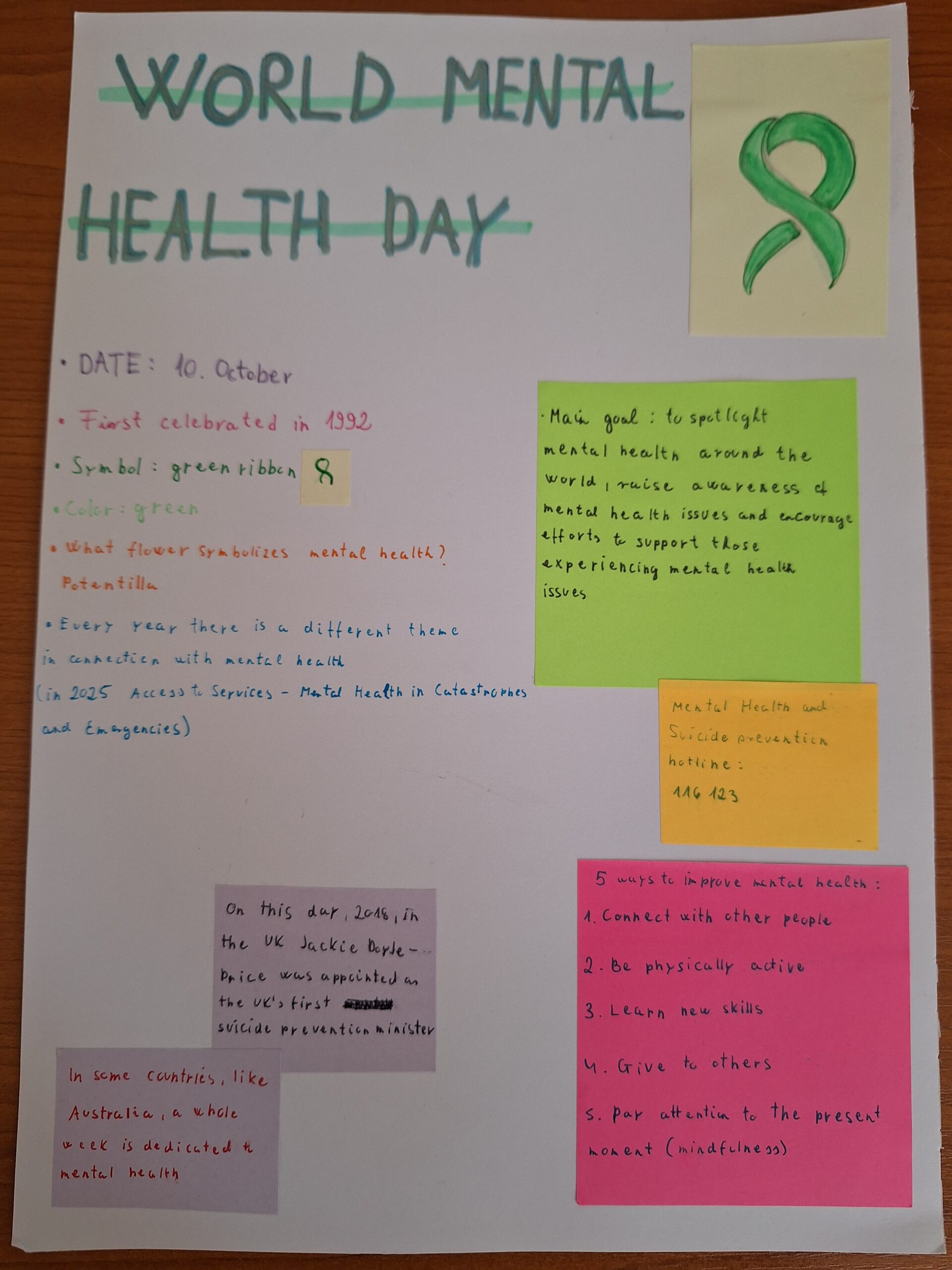 Az október 10-i Mentális egészség világnapról minden évben megemlékezünk a csoportjaimban. Most szerencsésen egybeesett ez a nap és a tananyag a Nmezetközi Érettségi Programos új 11. évfolyamos csoportomban (Health and well-being).
