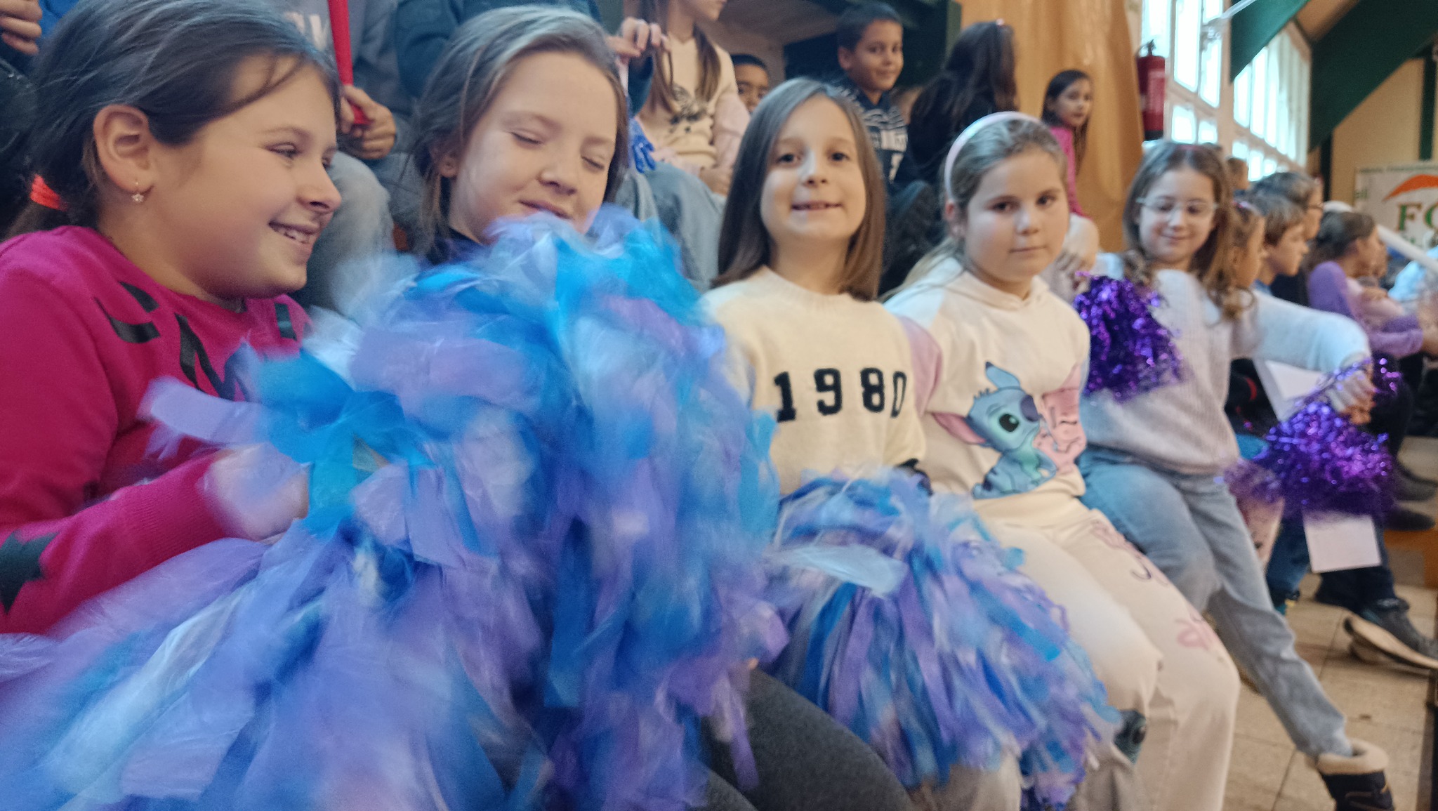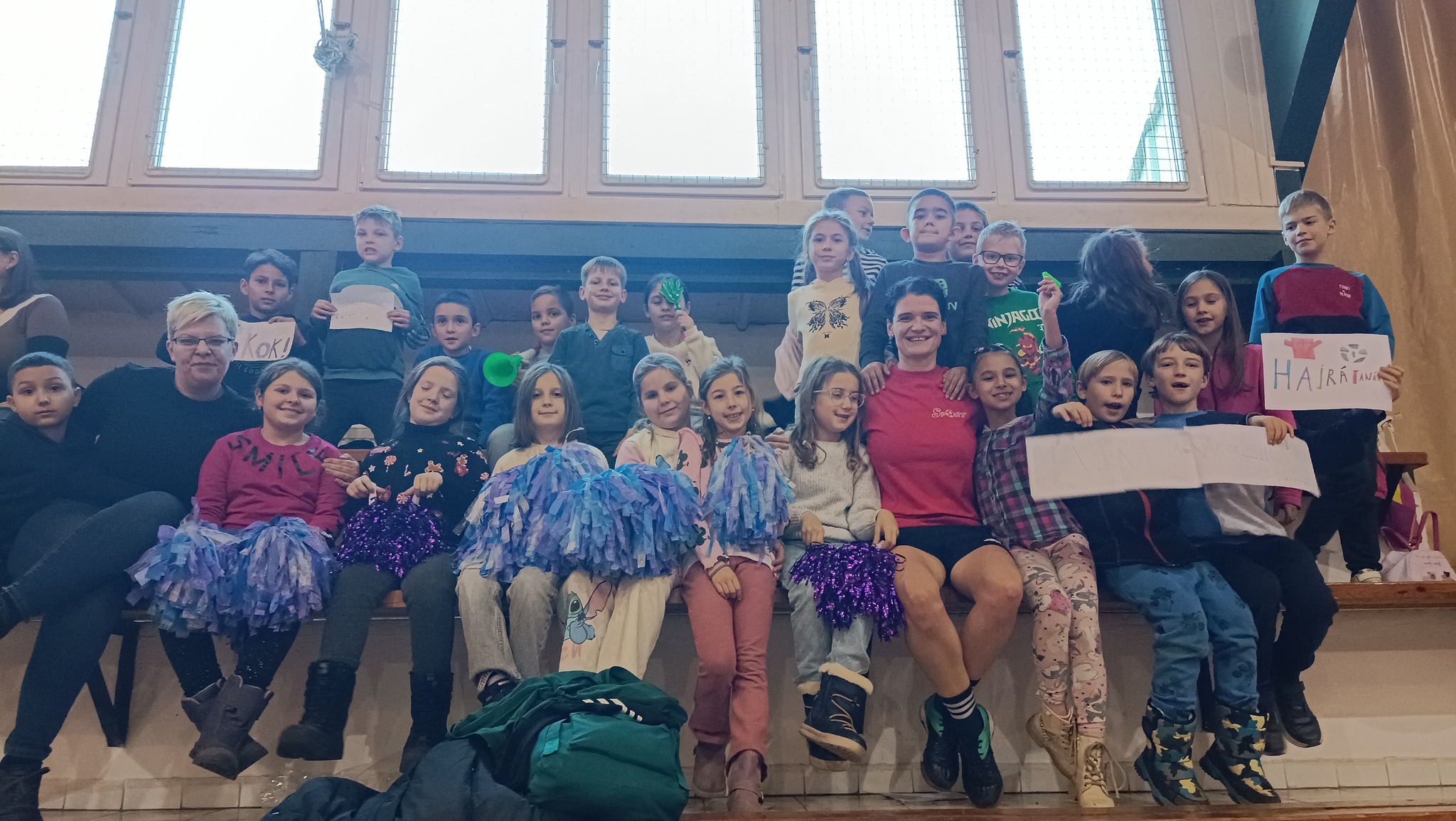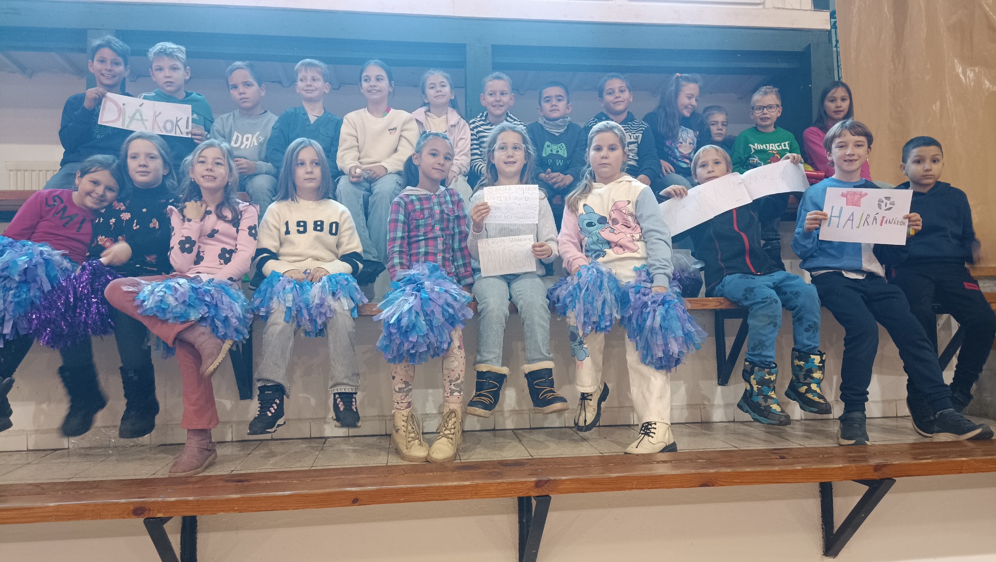 A boldogságóra alkalmával különleges élményben volt részünk: részt vettünk a Kiss László Városi Sportcsarnokban rendezett tanár–diák meccsen, A Magyar Labdarúgás Napja alkalmából. Bár mi magunk nem játszottunk, annál lelkesebben szurkoltunk. A közös drukkolás, a biztató kiáltások és a jókedv igazi összetartó erőt teremtett közöttünk. A gyerekek csillogó szemmel figyelték a mérkőzést, és együtt örültünk minden szép megmozdulásnak. A hangulat végig felszabadult és vidám volt – a közösség ereje és a közös élmény valódi boldogságforrásként tették emlékezetessé ezt a napot.