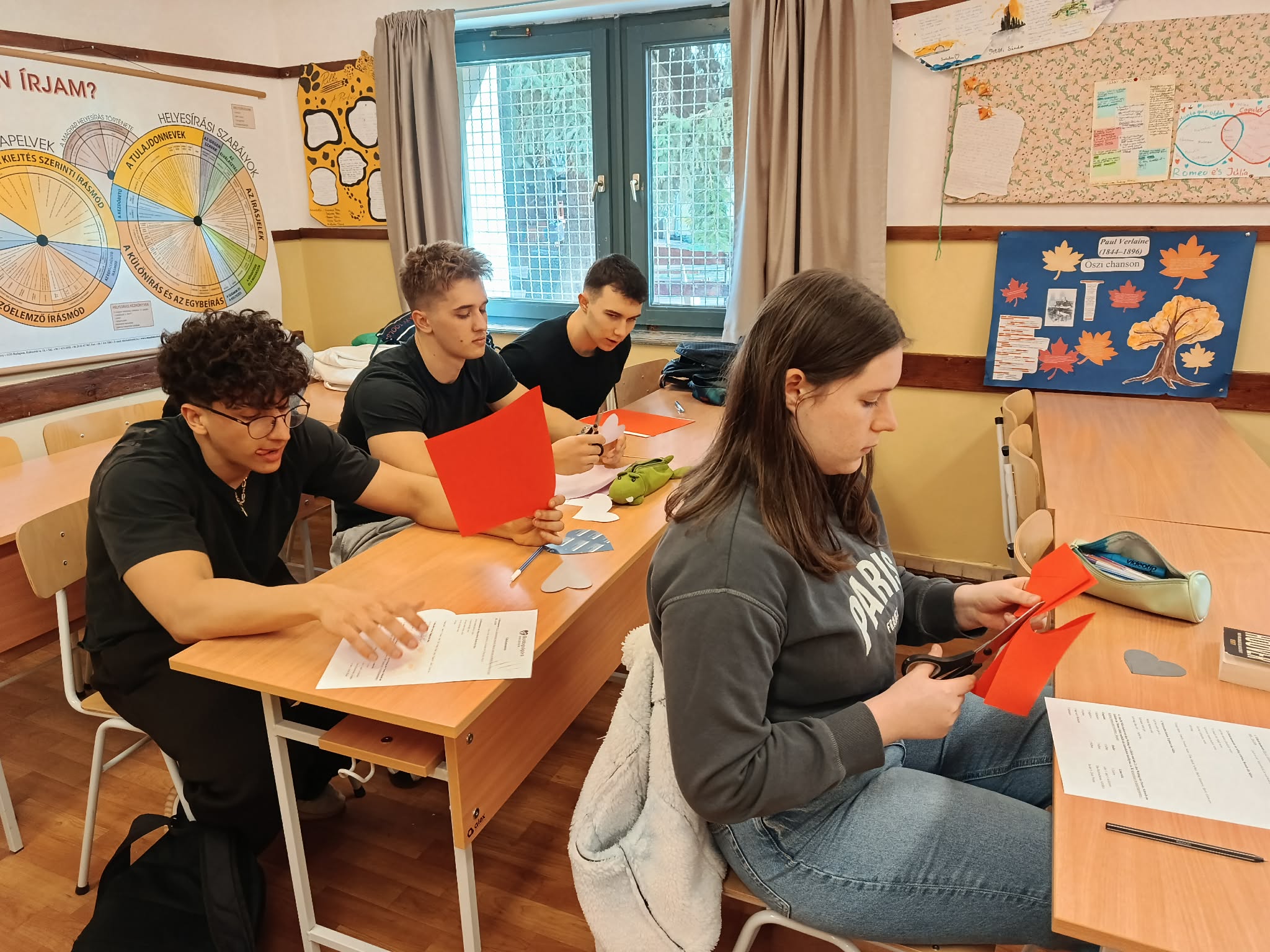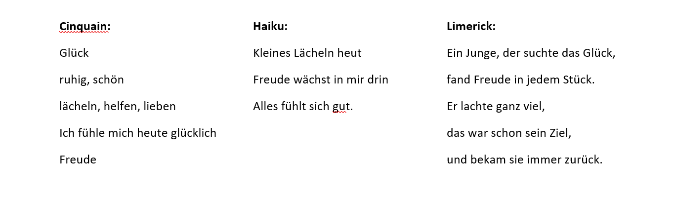 Ezután a diákok németül elmondták, mi minden okoz nekik örömet, mi az, ami boldoggá teszi őket. Sok minden szóba került, az olvasástól a zenehallgatáson át az iskolai sikerekig és a barátokkal eltöltött időig. Ezután a Költészet Világnapja tiszteletére verset írtunk, ezúttal a mesterséges intelligencia segítségével. A tavaly már megtanult cinquain és haiku versformák után most a limerick nevű versformával ismerkedtünk meg.