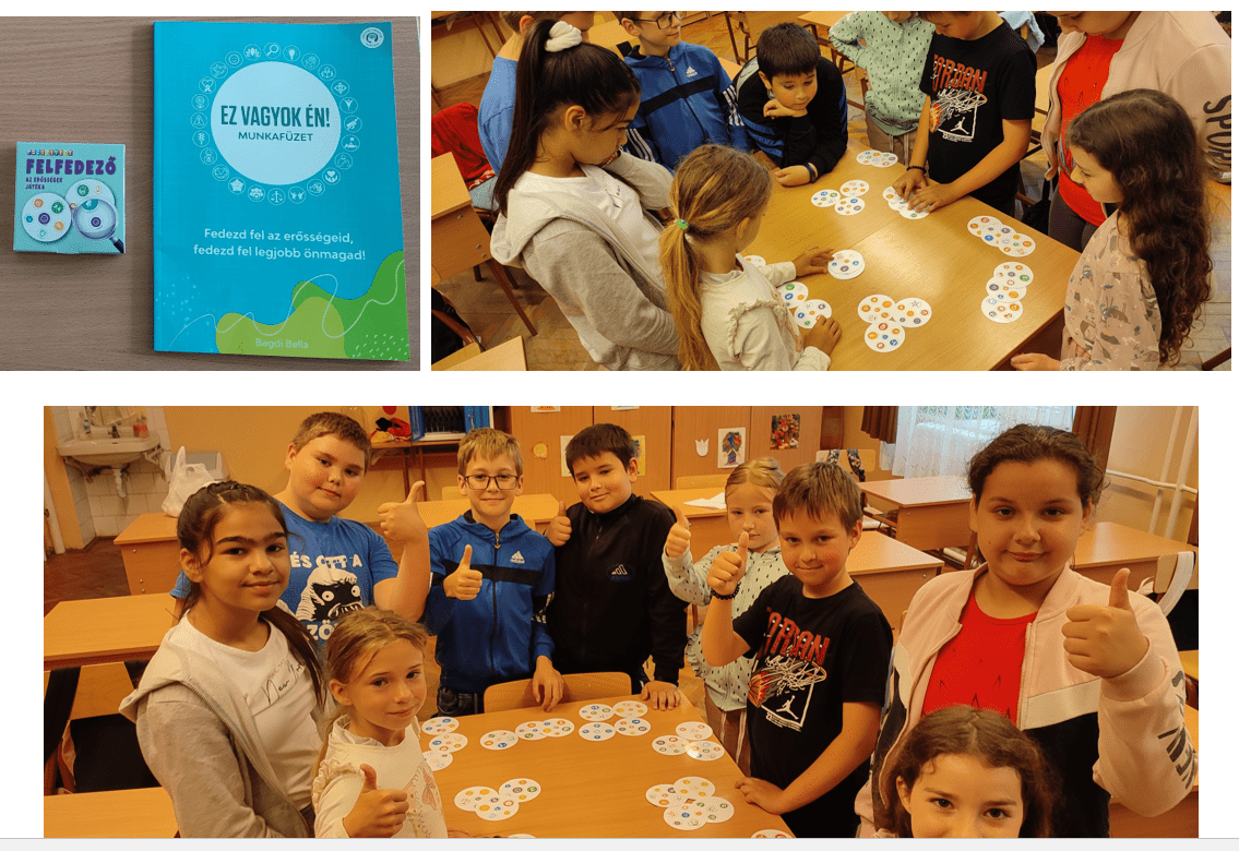 Természetesen mivel is telhetett volna az utolsó találkozásunk, mint játékkal. Eltáncoltunk a 20 másodperces órai felfrissülést hozó táncunkat utoljára. Megismertettem a gyerekekkel az Ez vagyok én fejlesztő kiadvánnyal és a Felfedező erősségek kártyajátékkal. Mellette az örök sláger a Pozitivity társasjáték is előkerült.