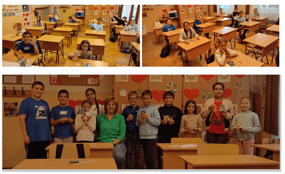Utolsó óránkon megköszöntem a gyerekeknek a munkáját. Nagyon sok pluszt, pozitivitást kaptam tőlük. Hálám jeléül kaptak egy kis csomagot: ceruzát – lejegyezni a nyári élményeket, radírt – kitörölni ami sikerül, rossz emlék lesz; gumicukor hamburger – hamuba sült pogi helyett a hosszú szünetre; robbanócukorka – mellyel berobbantunk a nyárba, lemosható tetoválás – a szabadságot jelképezve.