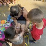 Június első hetében IS a gyermekeké volt a főszerep. Őket ünnepeltük, nekik szerettünk volna adni élményt, boldogságot és jókedvet, hiszen május utolsó vasárnapján őket ünnepeltük. Mi, akik a gyermekek miatt választottuk ezt a gyönyörű hivatást szerettük volna az egész nevelési évet megkoronázni különböző programokkal. A reggeli érkezés már az udvaron történt, ahol az óvodát ünnepi ruhába öltöztettük, feldíszítettük. Pikniket varázsoltunk a füves területre, raklapokból asztalt terítettünk, plédekkel biztosítottuk az ülőhelyet. A Grimm – busz színház társulatot már sokadik alkalommal vendégül láttuk, akik a „Rigócsőr” című gyermekmesét dramatizálták a gyermekeknek. Minden csoport kókuszgolyót készített, amit el is fogyasztott a piknik alkalmával. Csillám tetkót is kaptak a gyermekek egytől egyig, valamint még pálcikás jégkrémmel is kedveskedtünk számukra. Az egyik édesapa lovakkal foglalkozik, aki színesítette a gyermeknapi programsorozatunkat egy lovaglással. A gyermekek boldogok voltak és vidámak. Azt gondolom a rengeteg élménynek köszönhetően a fenntartható boldogság ki fog tartani szeptemberig, az új tanévig. :)