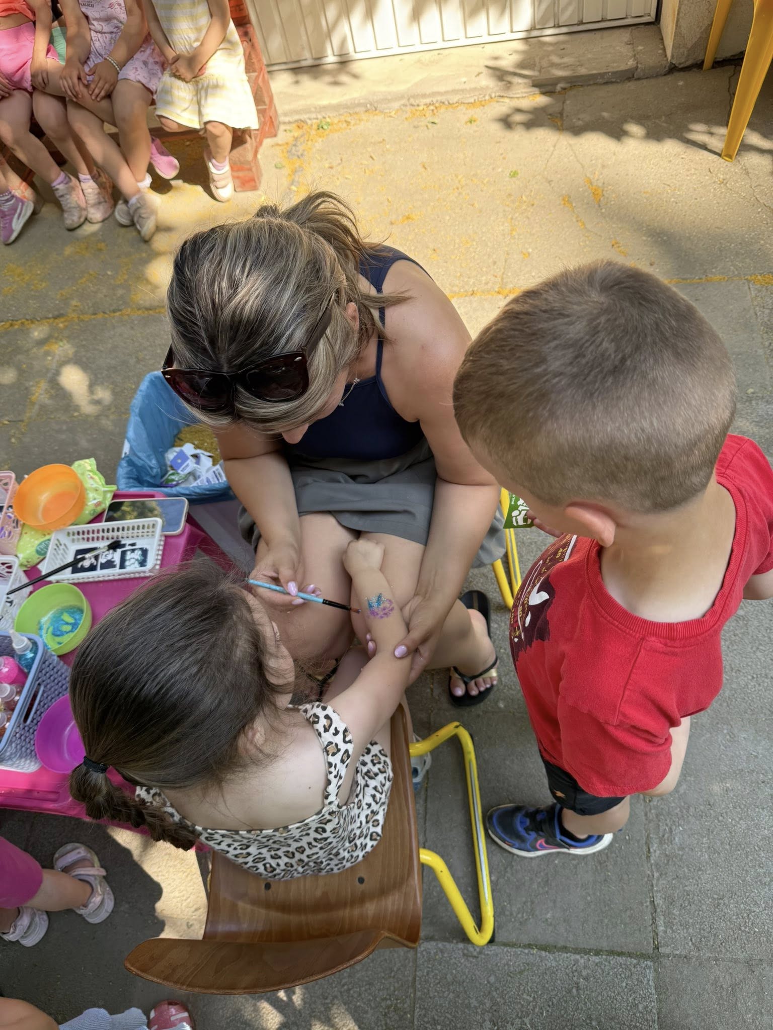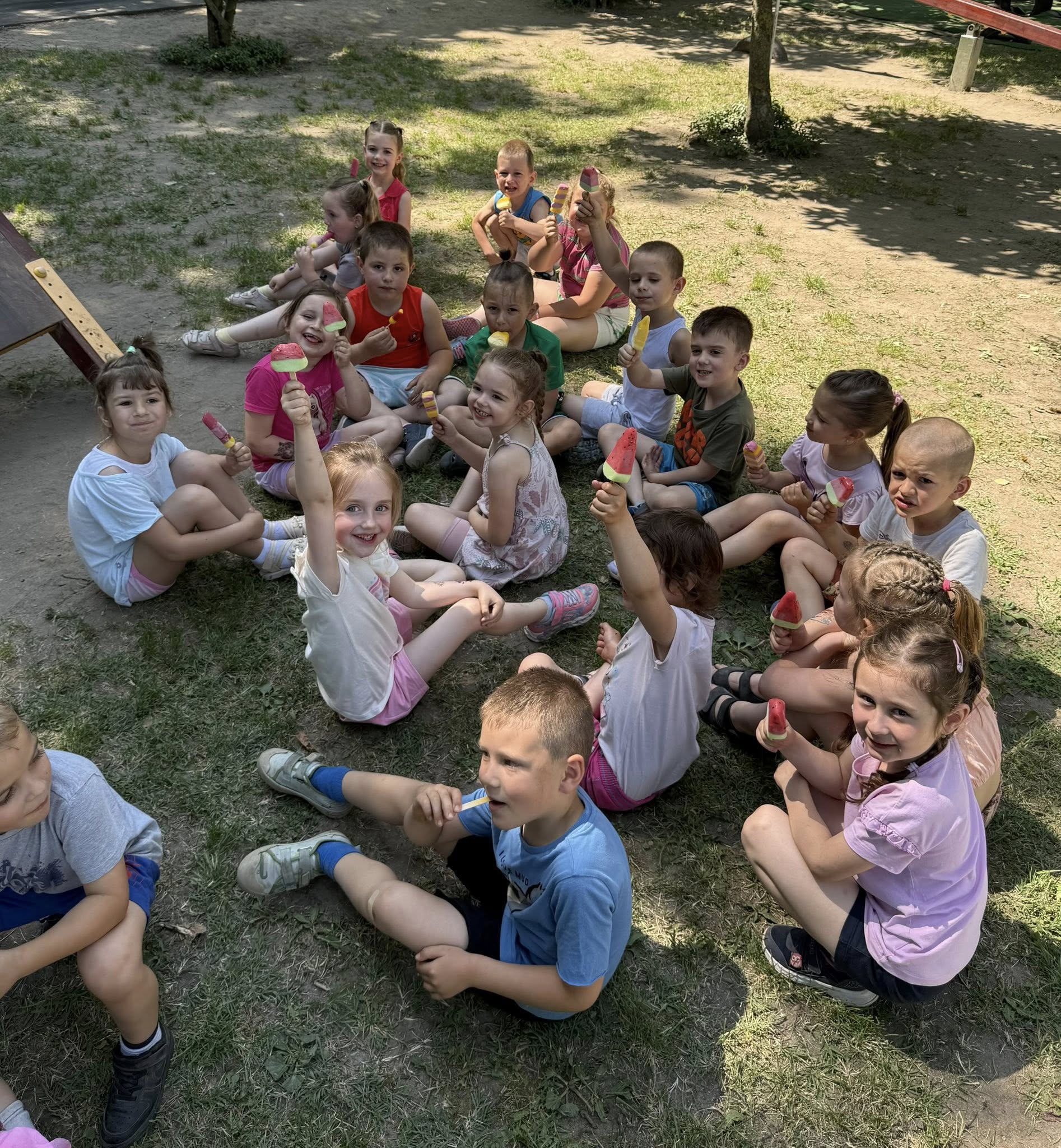 Június első hetében IS a gyermekeké volt a főszerep. Őket ünnepeltük, nekik szerettünk volna adni élményt, boldogságot és jókedvet, hiszen május utolsó vasárnapján őket ünnepeltük. Mi, akik a gyermekek miatt választottuk ezt a gyönyörű hivatást szerettük volna az egész nevelési évet megkoronázni különböző programokkal. A reggeli érkezés már az udvaron történt, ahol az óvodát ünnepi ruhába öltöztettük, feldíszítettük. Pikniket varázsoltunk a füves területre, raklapokból asztalt terítettünk, plédekkel biztosítottuk az ülőhelyet. A Grimm – busz színház társulatot már sokadik alkalommal vendégül láttuk, akik a „Rigócsőr” című gyermekmesét dramatizálták a gyermekeknek. Minden csoport kókuszgolyót készített, amit el is fogyasztott a piknik alkalmával. Csillám tetkót is kaptak a gyermekek egytől egyig, valamint még pálcikás jégkrémmel is kedveskedtünk számukra. Az egyik édesapa lovakkal foglalkozik, aki színesítette a gyermeknapi programsorozatunkat egy lovaglással. A gyermekek boldogok voltak és vidámak. Azt gondolom a rengeteg élménynek köszönhetően a fenntartható boldogság ki fog tartani szeptemberig, az új tanévig. :)