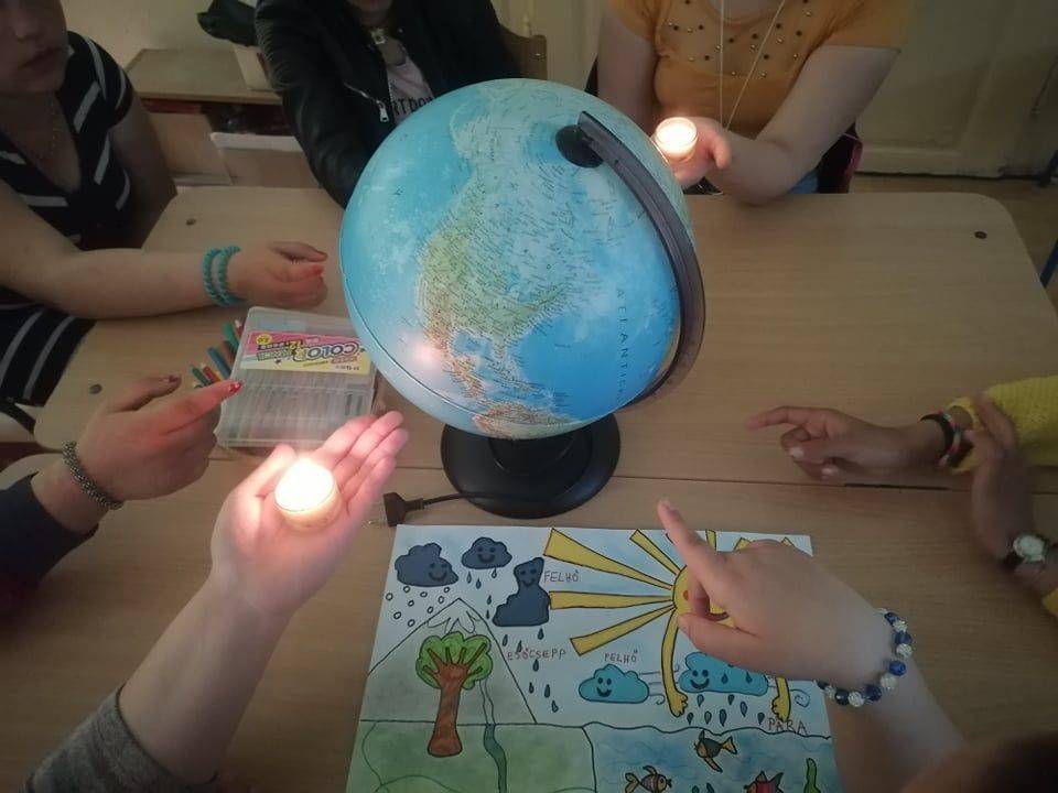 Föld Napja alkalmából énekeltünk,meghitt pillanatokat éltünk át. Beszélgettünk a: szelektív hulladékgyűjtésről,környezetünk tisztán tartásáról, a víz fontosságáról-víz körforgásáról…