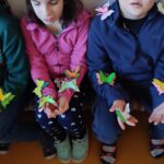 A gyerekek pillangókat kaptak, melyek különböző színűekés nagyságúak voltak. A feladat az volt, hogy fel kellett idézni valamelyik társukkal kapcsolatban átét apró örömöt, kedvességet, játékot, ami akkortól egy kedves élmény számára. Akivel kapcsolatos volt az élmény, a pillangóikat összekapcsoltuk. Így kaptunk számtalan színes pillangót, mellyekkel jót játszottunk, majd kiraktuk őket a Boldogság falunkra, hogy még sokáig tudjuk emlegetni a hozzá kapcsolódó élményeket.