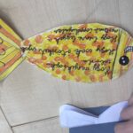 A „Ha lenne három jókívánságom” feladat során három kívánságukat egy-egy kivágott halacskára írták vagy rajzolták fel a gyerekek, majd ezeket egy közösen készített jókívánság-plakátra ragasztottuk. A közös alkotás erősítette az összetartozás élményét, és lehetőséget adott annak felismerésére, hogy sok kívánság nemcsak egyéni, hanem közösségi jelentéssel is bír.