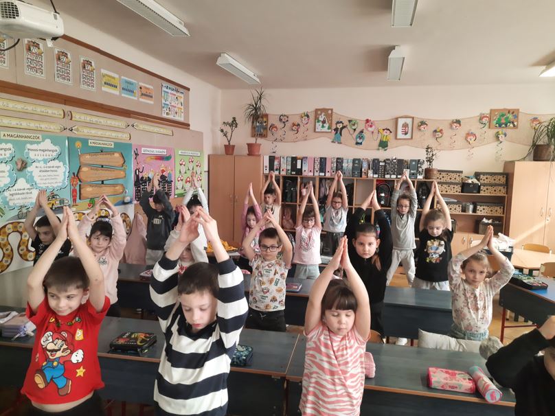 Majd Bagdi Bella meditációs hanganyagára ellazultunk, befelé fordultunk. Az ellazulás után logikai, betűrejtvényeket oldottunk meg. Meghallgatták a gyerekek a mai anyaghoz kapcsolódó mesét a Ki tudja, ez jószerencse vagy balszerencse? címűt. Megbeszéltük a megküzdési stratégiák fajtáit, stresszhelyzeteket. Az állati állapotok játék után, mindenki rajzot készített kedvenc állatáról.