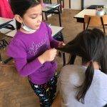 A gyerekekkel a megküzdési stratégiák kapcsán az egymás frizurájának elkészítését választottuk. Az először könnyűnek tűnő feladat, egyre inkább újabb és újabb akadályokat állított a gyerekek elé. Annak, aki a frizurát készítette azért volt nehéz, mert a párja nem olyan hajkoronát szeretett volna, a másiknak meg azért volt küzdelmes, hogy el tudja-e készíteni és vajon tetszeni fog-e a társának? Kis segítséggel, rávezetéssel sikerült a feladatot sikeresen és vidáman megvalósítani.