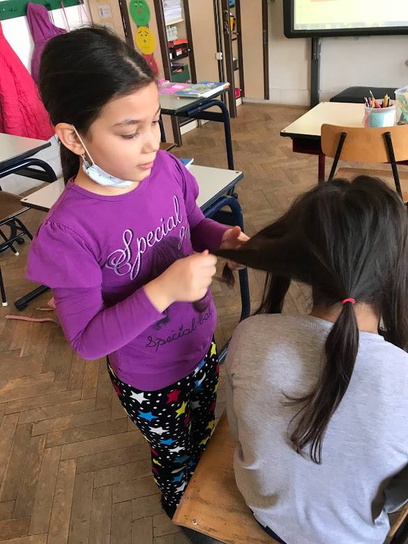 A gyerekekkel a megküzdési stratégiák kapcsán az egymás frizurájának elkészítését választottuk. Az először könnyűnek tűnő feladat, egyre inkább újabb és újabb akadályokat állított a gyerekek elé. Annak, aki a frizurát készítette azért volt nehéz, mert a párja nem olyan hajkoronát szeretett volna, a másiknak meg azért volt küzdelmes, hogy el tudja-e készíteni és vajon tetszeni fog-e a társának? Kis segítséggel, rávezetéssel sikerült a feladatot sikeresen és vidáman megvalósítani.