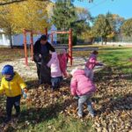 Sok-sok csapatmunkában vehettünk részt a hetekben. a kedvencük volt a levélseprés és a karikabújtató játék. Sok figyelemmel, szeretettel, együttműködéssel segítettük egymást. Néhányat sorolok fel amiben a kicsik is hatékonyan részt vettek. Nagy munka volt a az udvarrendezés, ami még most is folyamatban van. Itt a kicsiknek is nagy szerepe volt, hogy zsákba rakják a nagyobbak által összegereblyézett őszi leveleket. Jól megtapostattuk, hogy minél több férjen bele. Szó esett a környezettudatosság, a fenntarthatóság. Sok kisgyerek tisztában van vele, hogy hová kerül a sok levél, miért került sor a kiskert felásására, gyomtalanítására. Részt vettünk közösen csapatjátékokban: karikabújtató, termésgyűjtögető, csapatverseny. Mozgás utáni közös teremrendezés is lelkesedéssel töltötte el a gyerekeket. Sok gyermek segítőkész, empatikus a csoportunkba. Beszélgetések alkalmával is szóhoz engedik jutni egymást, ez leginkább a nagyobb, fejlettebb gyerekekre vonatkozik.
