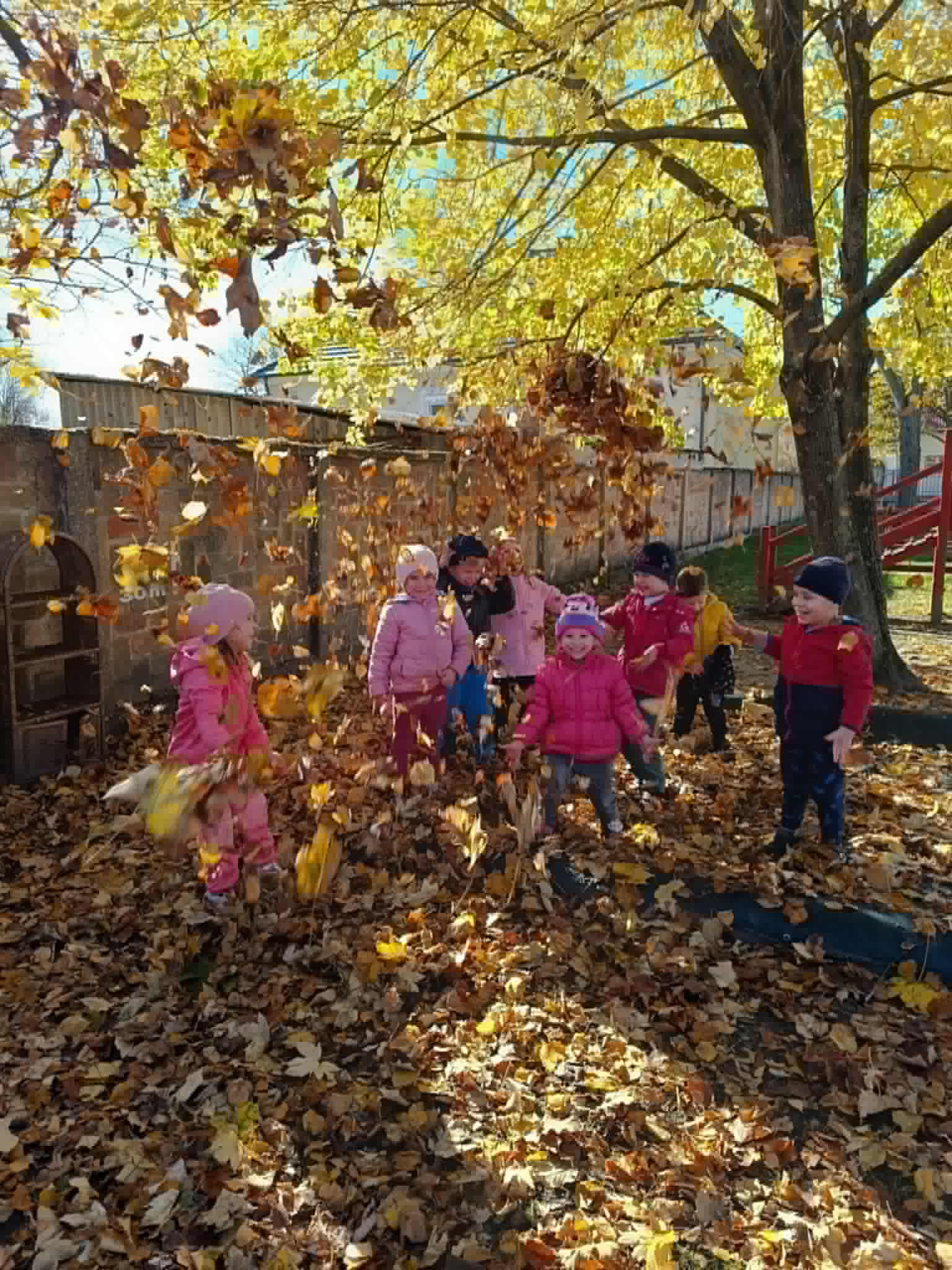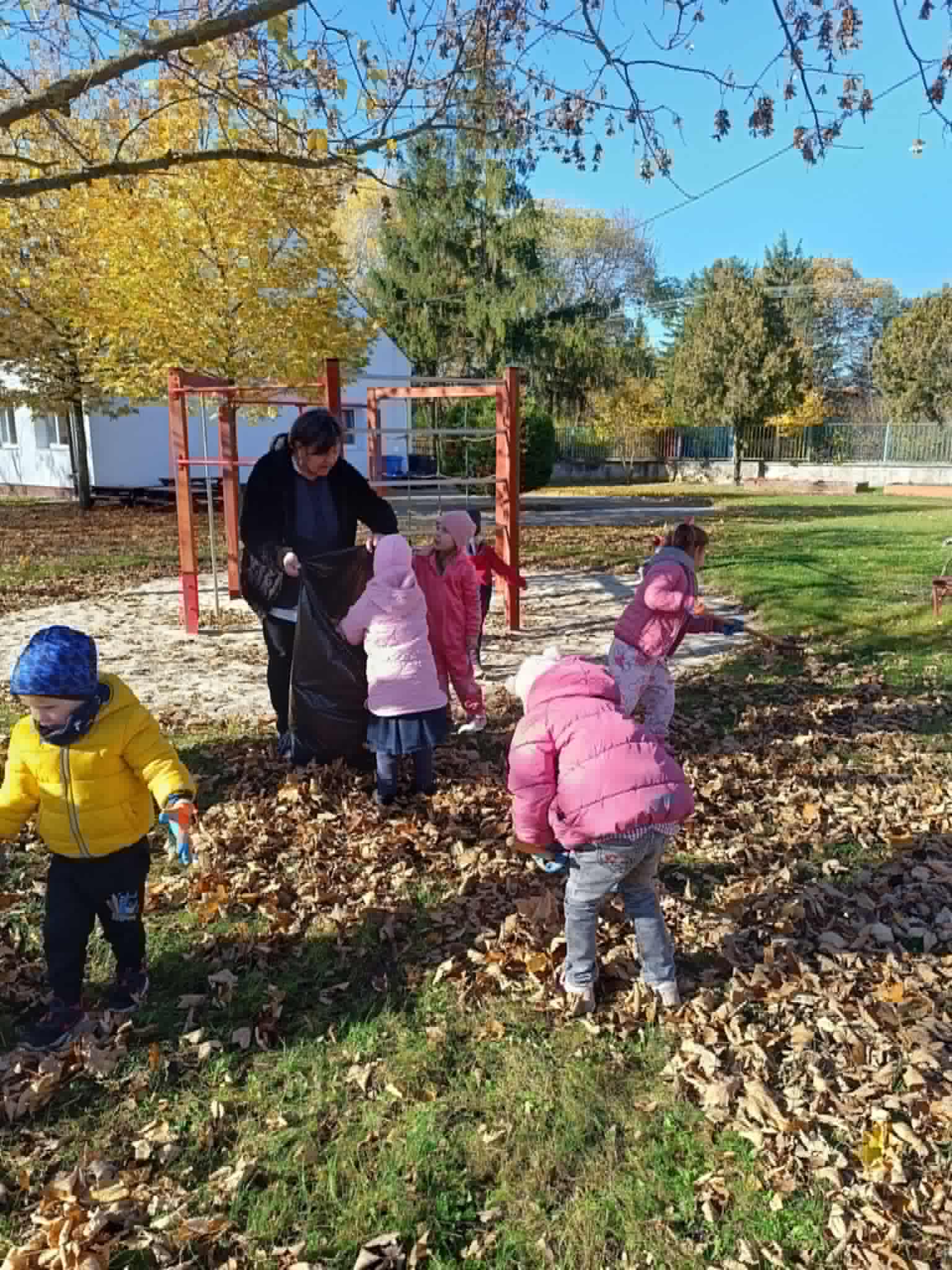 Sok-sok csapatmunkában vehettünk részt a hetekben. a kedvencük volt a levélseprés és a karikabújtató játék. Sok figyelemmel, szeretettel, együttműködéssel segítettük egymást. Néhányat sorolok fel amiben a kicsik is hatékonyan részt vettek. Nagy munka volt a az udvarrendezés, ami még most is folyamatban van. Itt a kicsiknek is nagy szerepe volt, hogy zsákba rakják a nagyobbak által összegereblyézett őszi leveleket. Jól megtapostattuk, hogy minél több férjen bele. Szó esett a környezettudatosság, a fenntarthatóság. Sok kisgyerek tisztában van vele, hogy hová kerül a sok levél, miért került sor a kiskert felásására, gyomtalanítására. Részt vettünk közösen csapatjátékokban: karikabújtató, termésgyűjtögető, csapatverseny. Mozgás utáni közös teremrendezés is lelkesedéssel töltötte el a gyerekeket. Sok gyermek segítőkész, empatikus a csoportunkba. Beszélgetések alkalmával is szóhoz engedik jutni egymást, ez leginkább a nagyobb, fejlettebb gyerekekre vonatkozik.