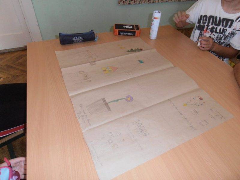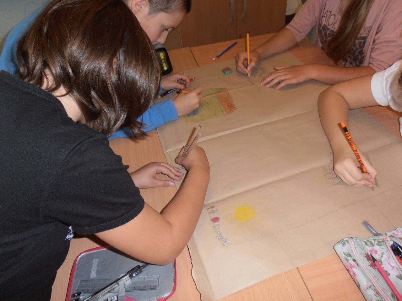 A diákok csoportokban dolgoztak, a rajzos feladatot választották. Az óra megmozgatta az érzéseket, mert a diákok nyíltan, őszintén gondolkodtak. Egy kislány kórházat rajzolt, ezzel köszönte meg az orvosok segítségét. Mások a családjukról, szüleikről meséltek munka közben.