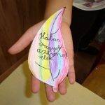 Reláxálás, beszélgetés után a hálafára elkészítettük a leveleket, amikre felírtuk, hogy miért vagyunk hálásak.