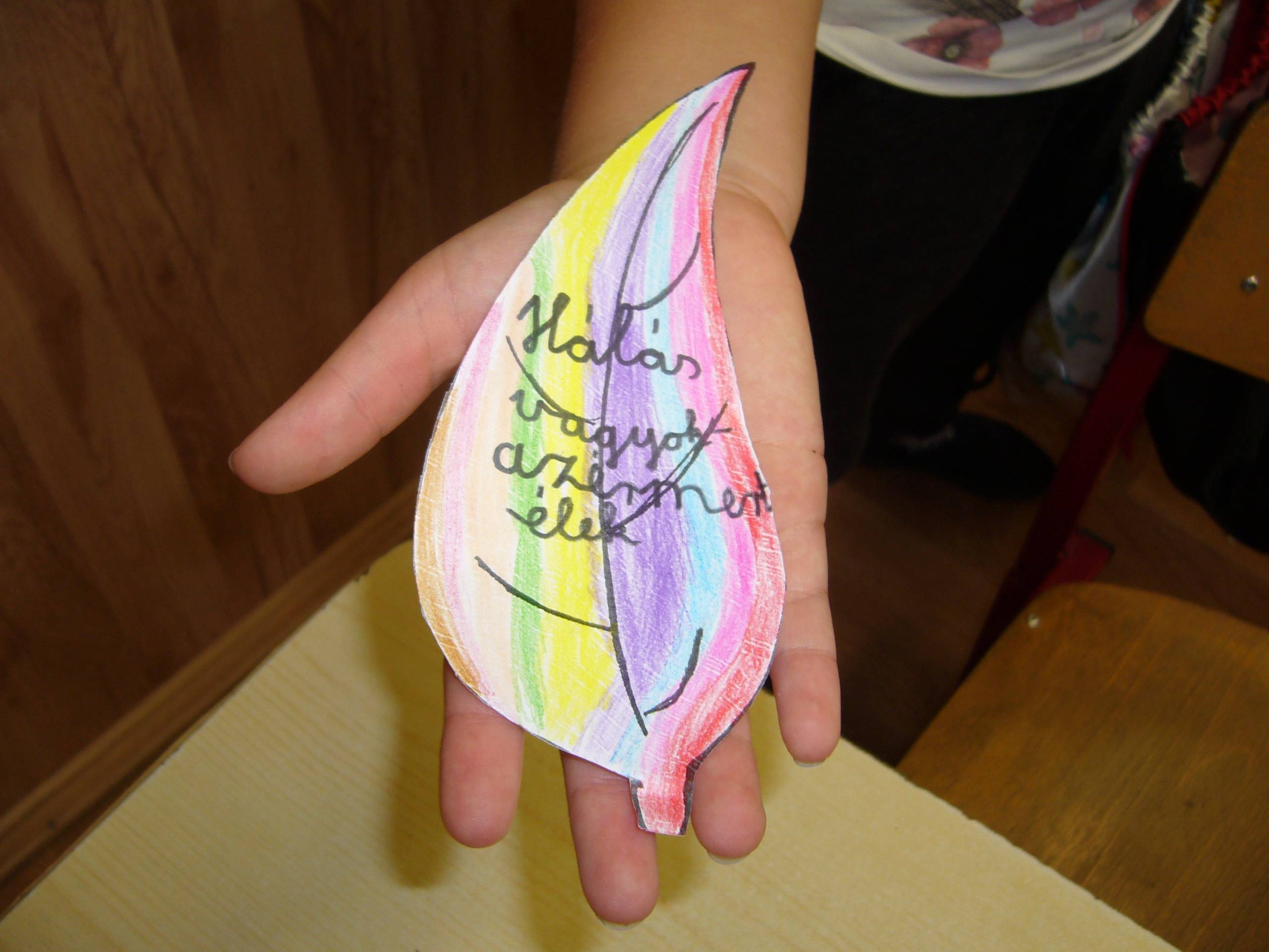 Reláxálás, beszélgetés után a hálafára elkészítettük a leveleket, amikre felírtuk, hogy miért vagyunk hálásak.