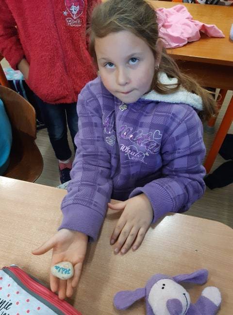 A hála fogalmának elmagyarázásával kezdtük az órát. Miután megbeszéltük mit is jelent a hála, miért lehetünk hálásak, illetve miért jó nekünk, ha hálásak vagyunk, minden gyerek elmondta miért hálás. Ezután hálaköveket választhattak, és az osztályból választhattak egy barátot, akinek hálásak valamiért. Majd készítettünk még hálakövet, amit mindenki hazavihetett, és otthon is kifejezhette háláját. A gyerekek nagyon lelkesen adták egymásnak a hálakövet, aki nem kapott senkitől, annak mi a tanárnénik adtunk egyet hálánk jeléül. Az otthoni hálakövet volt aki már az iskolában átadta a szüleinek, annyira izgatott volt.