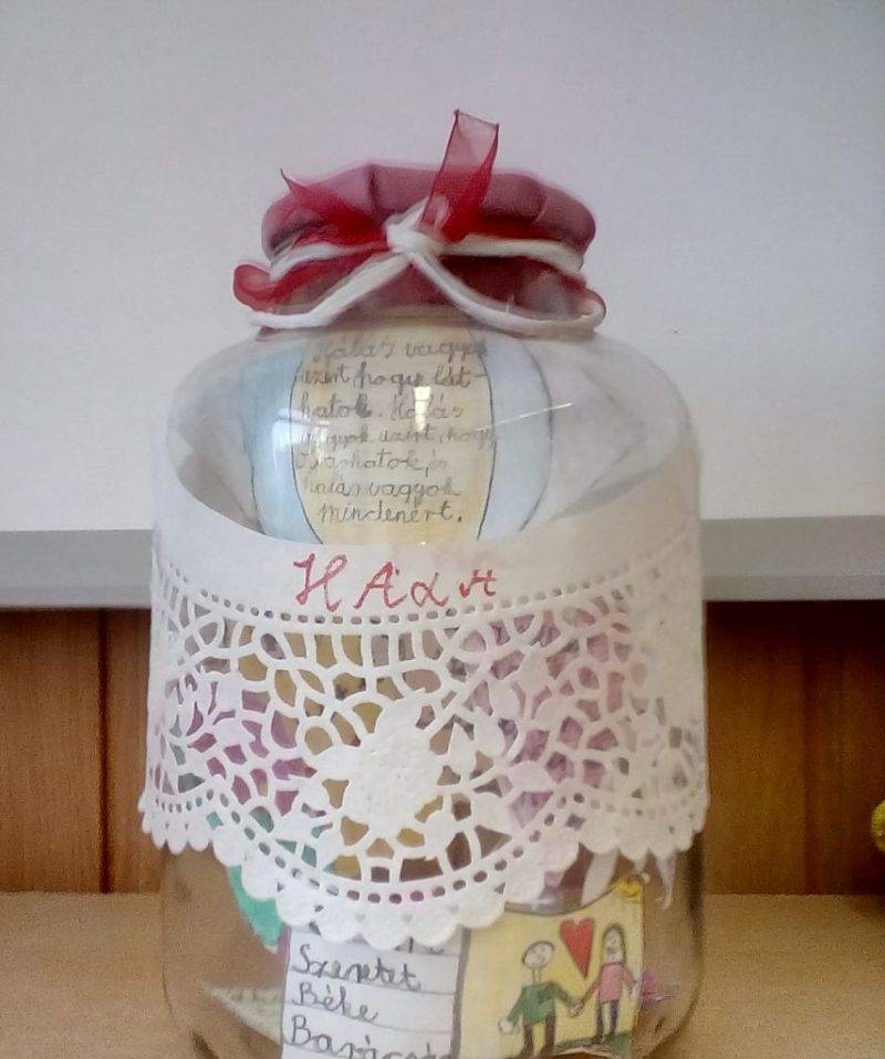 Folyamatosan töltjük a” HÁLA befőtt” üvegünket.