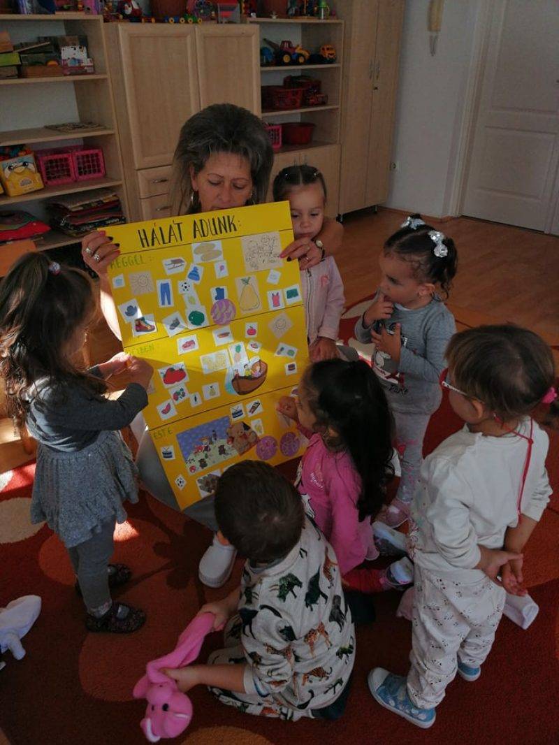 Kiscsoportosaim most ismerkednek a Boldogság – programmal. A foglalkozások előtt mindig relaxálunk picit. Meghallgattuk a hónap dalát, ami nagyon tetszett a gyerekeknek. Megbeszéltük, hogy kinek miért lehetünk hálásak. Hálaleveleket adtunk egymásnak, elolvastuk a Hálafa történetét. Nagyon ügyesek voltak a kicsik a foglalkozásokon.