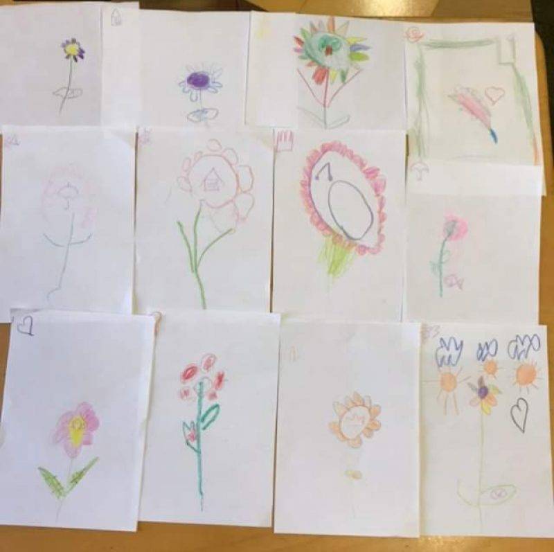 A gyerekek annak a társuknak rajzoltak virágot, akinek meg akartak köszönni valamit, akinek hálásak valamiért.