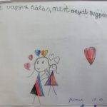Elindítottuk a hálafüzetünket is, és bővítettük egy „hála-lánccal”, amire mindig felfűzött egy gyöngyöt az a kisgyerek, aki egy újabb hála-üzenetet írt a füzetünkbe. Időként elővesszük, megszámoljuk, mennyi gyöngy van rajta, és emlékeztetjük magunkat arra, mennyi mindenért lehetünk hálásak.
