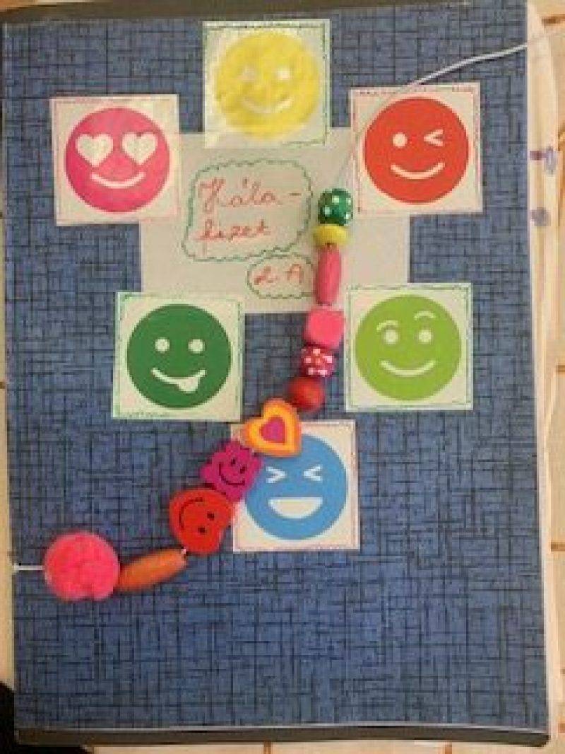 Elindítottuk a hálafüzetünket is, és bővítettük egy „hála-lánccal”, amire mindig felfűzött egy gyöngyöt az a kisgyerek, aki egy újabb hála-üzenetet írt a füzetünkbe. Időként elővesszük, megszámoljuk, mennyi gyöngy van rajta, és emlékeztetjük magunkat arra, mennyi mindenért lehetünk hálásak.