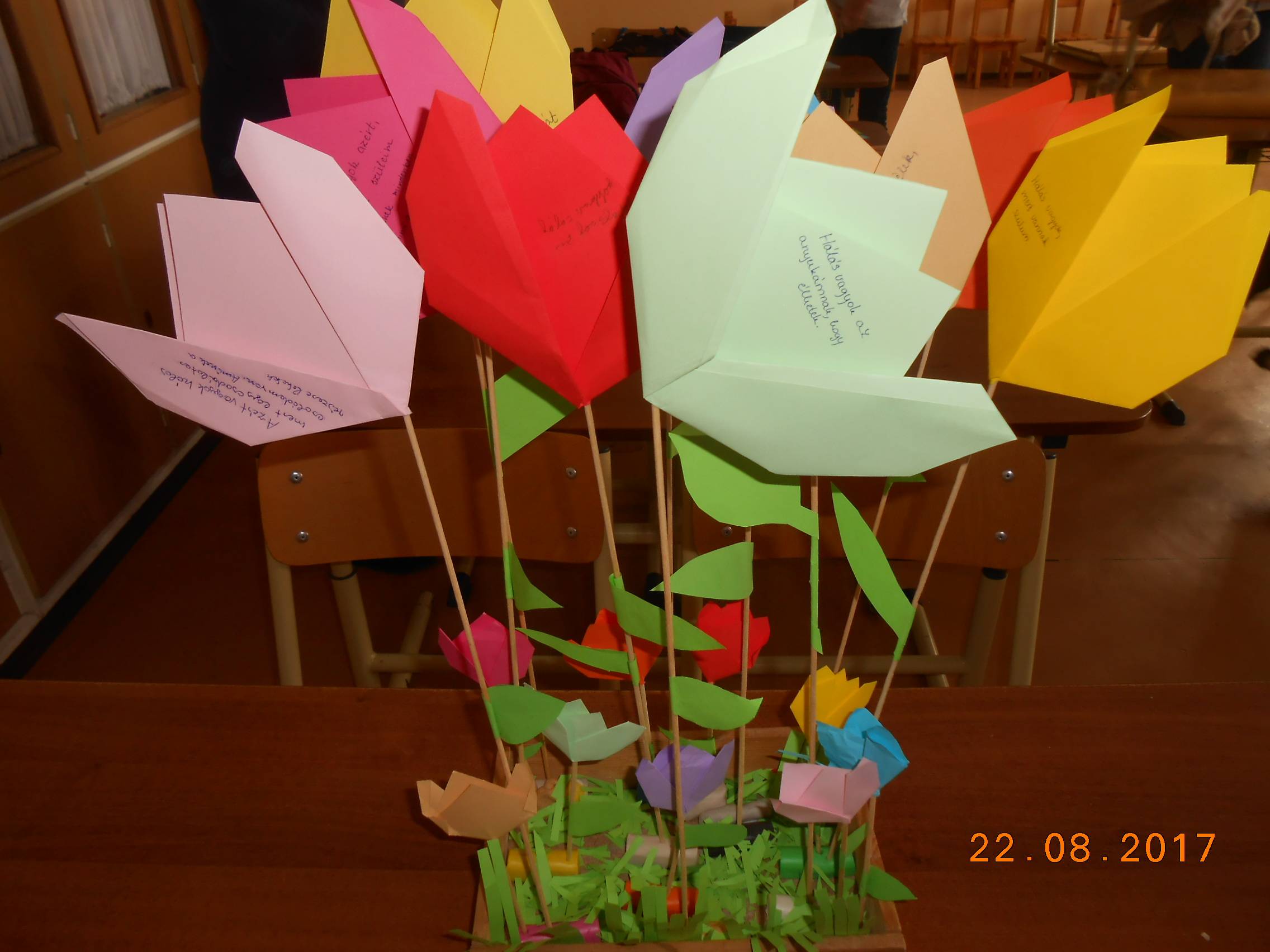 A hálakert elkészítését szívesen végezték. Az ő ötletük volt, hogy origami virágokkal tegyék tele a kertet. A munka során segítették egymást. Egy kellemes délutánt töltöttünk együtt.