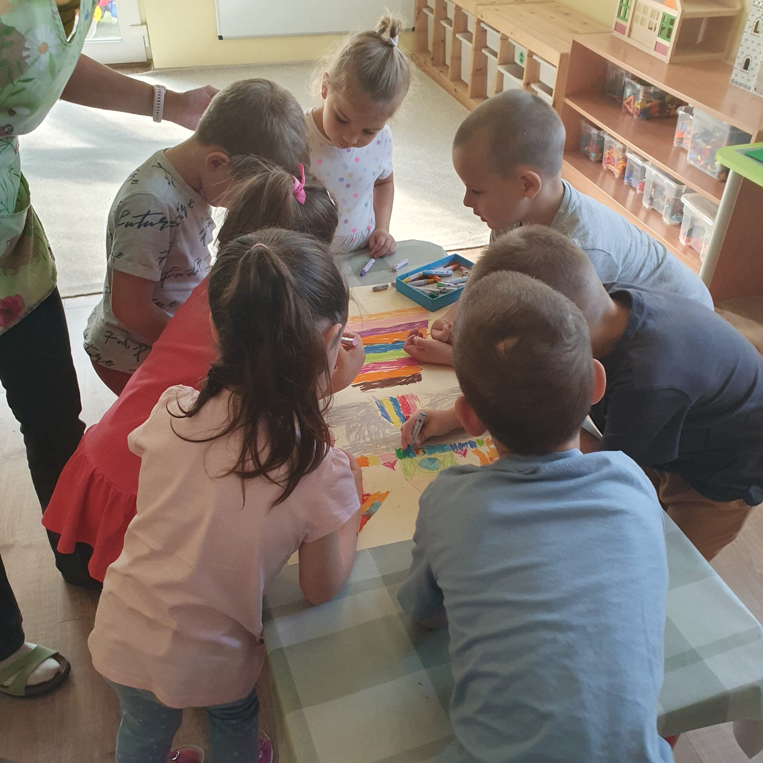 Először megrajzoltuk és közösen kiszíneztük a ‘Boldogság várát’. A gyerekek nagyon szívesen vettek részt a csoportos feladatban, tetszik nekik a szép színes vár, amit a csoportszoba falára ki is tettünk. Büszkék rá, és egy különleges szerepet is betölt nálunk: az aludhat a Boldog vár előtt, aki aznap igazán jól viselkedett.