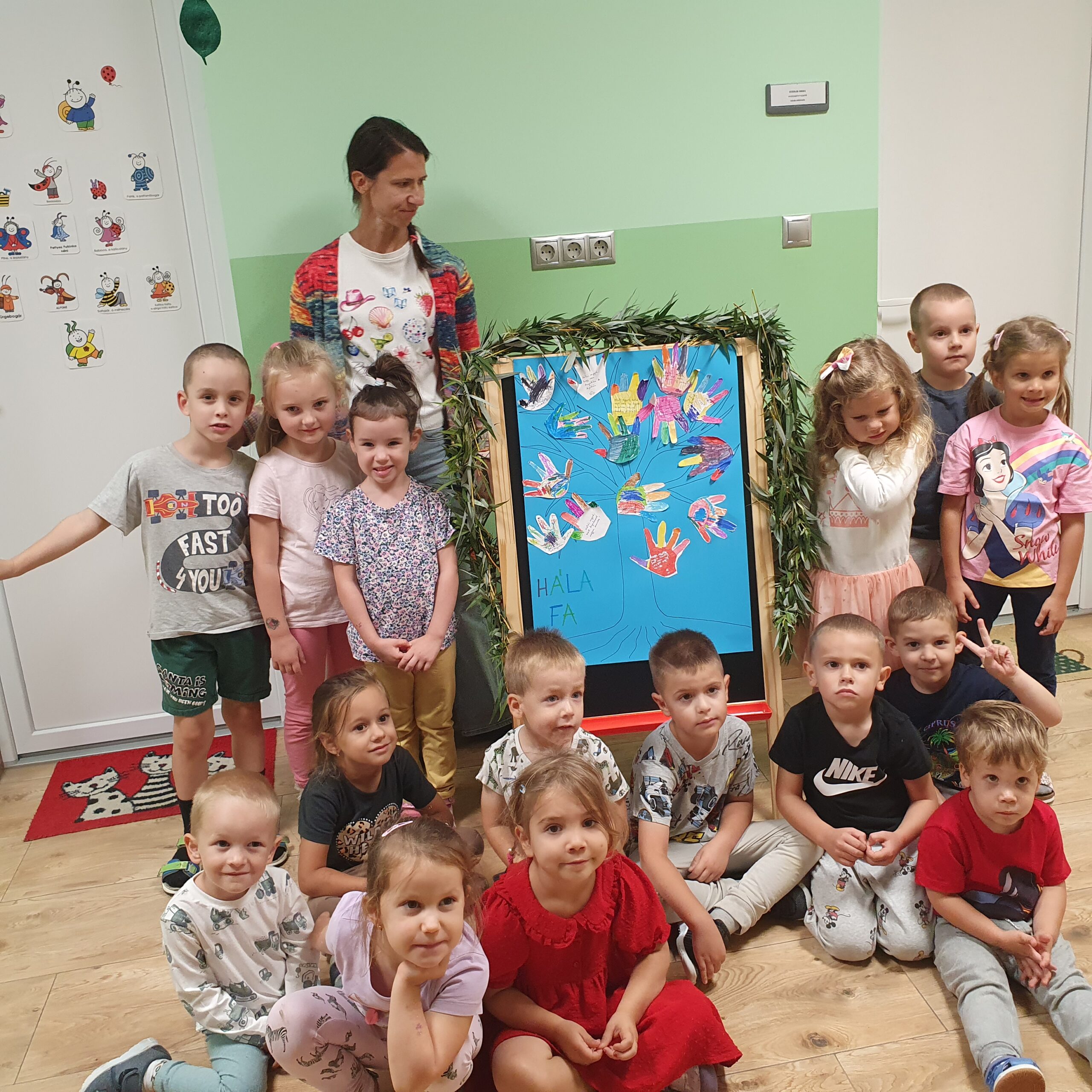 Közösen elkészítettük a ‘Hálafát’. Mindenki elmondta, hogy miért hálás a leginkább, én pedig beleírtam a papír tenyerükbe, amit közben kiszíneztek és a fára ragasztottak. Kitettük az öltözőbe, hogy a szülők is láthassák, és boldoggá tegye őket, mert nagyon sokan a szüleikért a leghálásabbak.