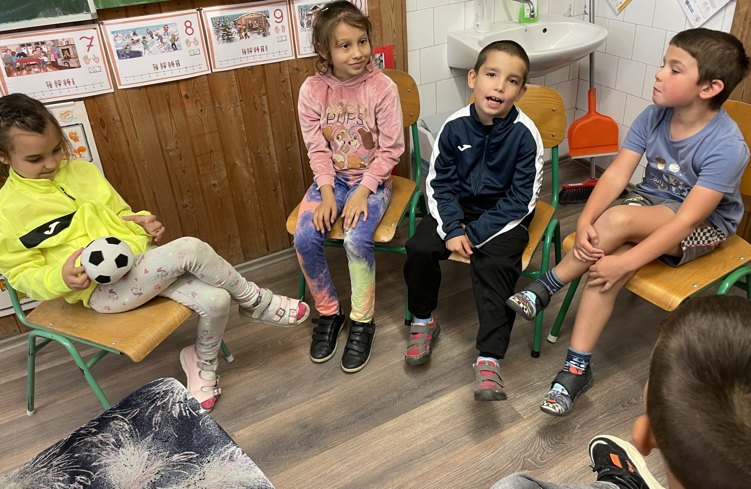Ebben a tanévben a boldogságórák feladatait 5 fő első osztályos tanulásban akadályozott tanulóval végezzük. A szeptember hónap a beszoktatásról, egymás megismeréséről, elfogadásáról szólt. A kicsik nagyon hálásak tudnak lenni egy ölelésért, kedves szóért, dicséretért, amit általában öleléssel viszonoznak. A városi sportklub egy focilabdát ajándékozott a gyerekeknek, melyet egy közös fotó elkészítésével és elküldésével háláltunk meg. Nagy örömöt jelentett a tanulóknak, hogy az ABC-s tabló előtt készített fotóikat az osztályban elhelyeztük egy szív alakú táblára. Büszkén mutatják mindenkinek, aki bejön az osztályterembe. Hálásak voltak azért a játékért, amit egy iskolai program keretében az iskolai terápiás kutyákkal játszhattak.