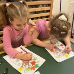 Hálafa kiszínezése, majd a színes levelekbe beleírjuk miért vagyunk hálásak, és felragasztjuk a fára.