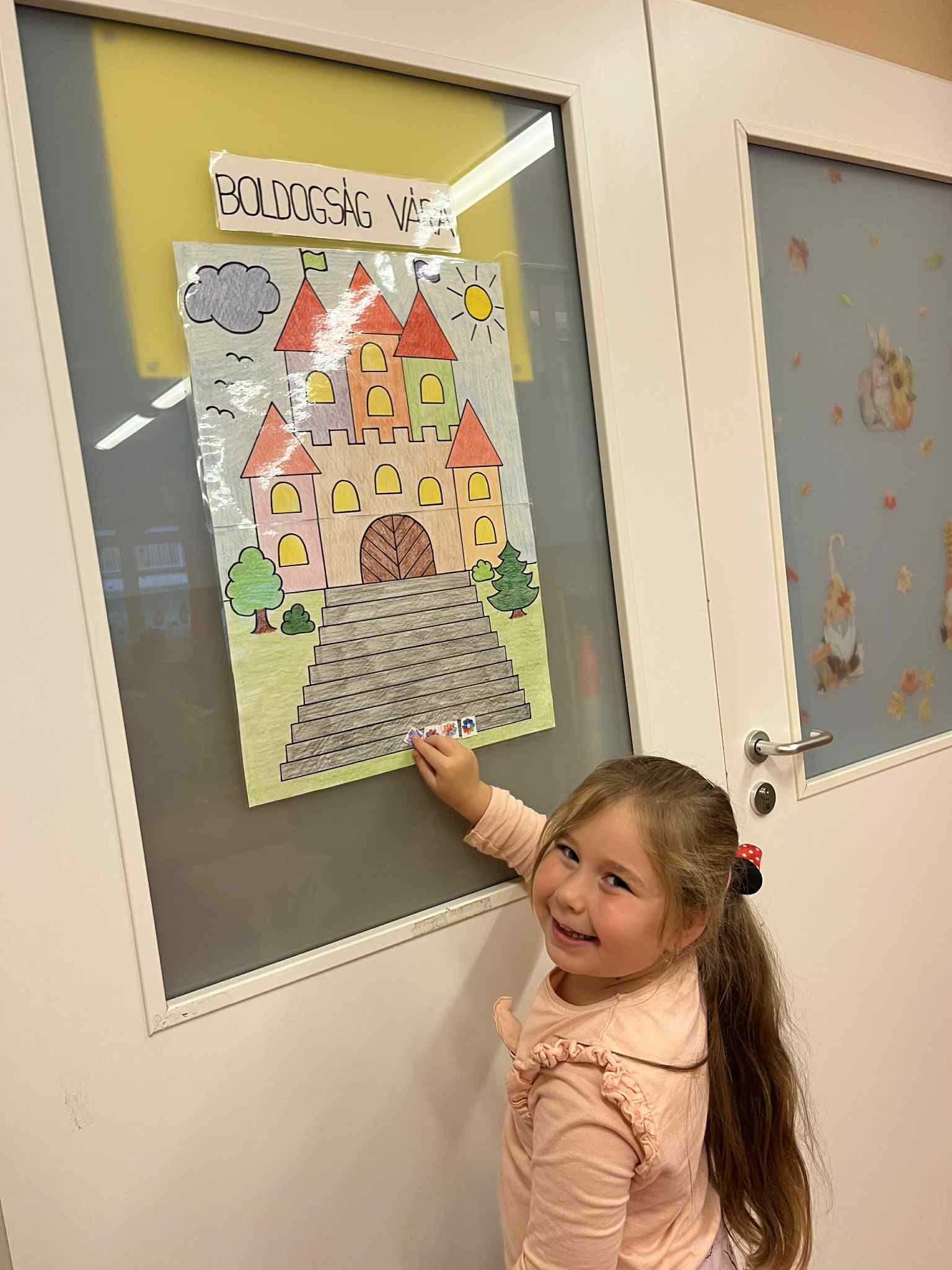 5. Lezárás: A hála jelének kiszínezése, majd felragasztása a Boldogság vár első lépcsőfokára.