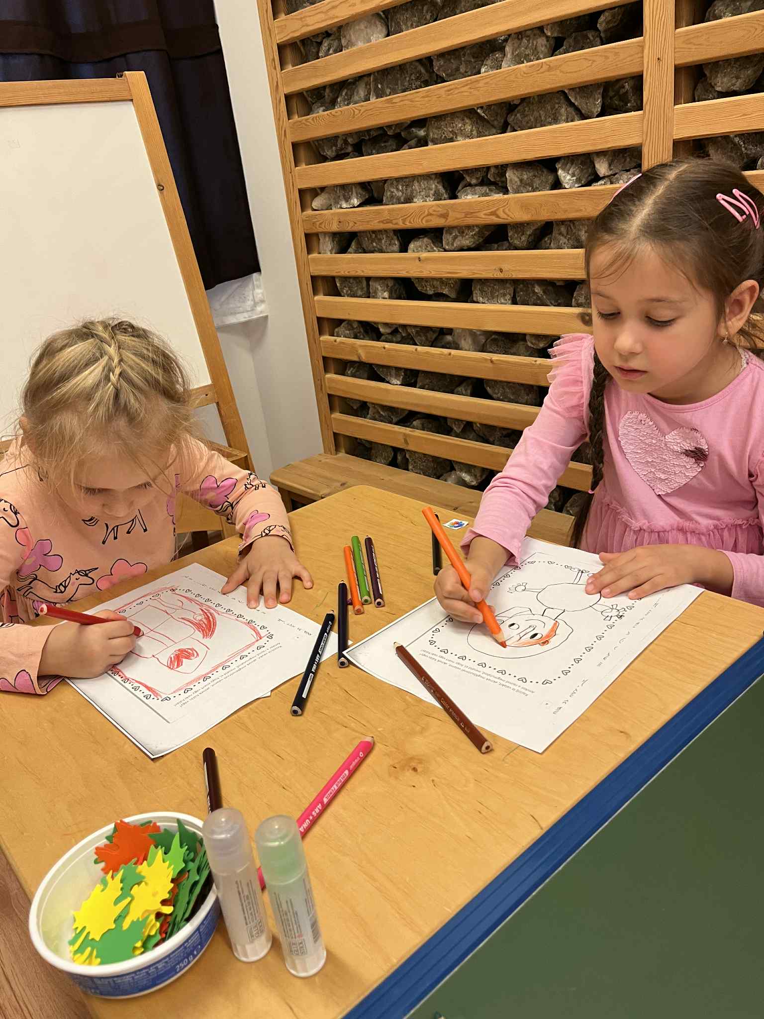 Hálafa kiszínezése, majd a színes levelekbe beleírjuk miért vagyunk hálásak, és felragasztjuk a fára.