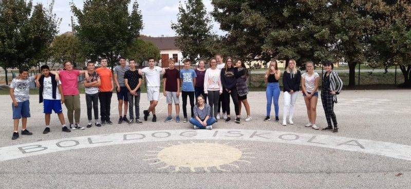 Az idei év lesz az utolsó, amit együtt tölt az osztály. Négy éve tartunk boldogság órákat. Felidéztük az elmúlt évek élményeit és felsoroltuk azt a sok mindent amiért hálásak vagyunk egymásnak és az osztálynak. Az udvaron készítettünk képeket a „Boldog iskola” felirat előtt.