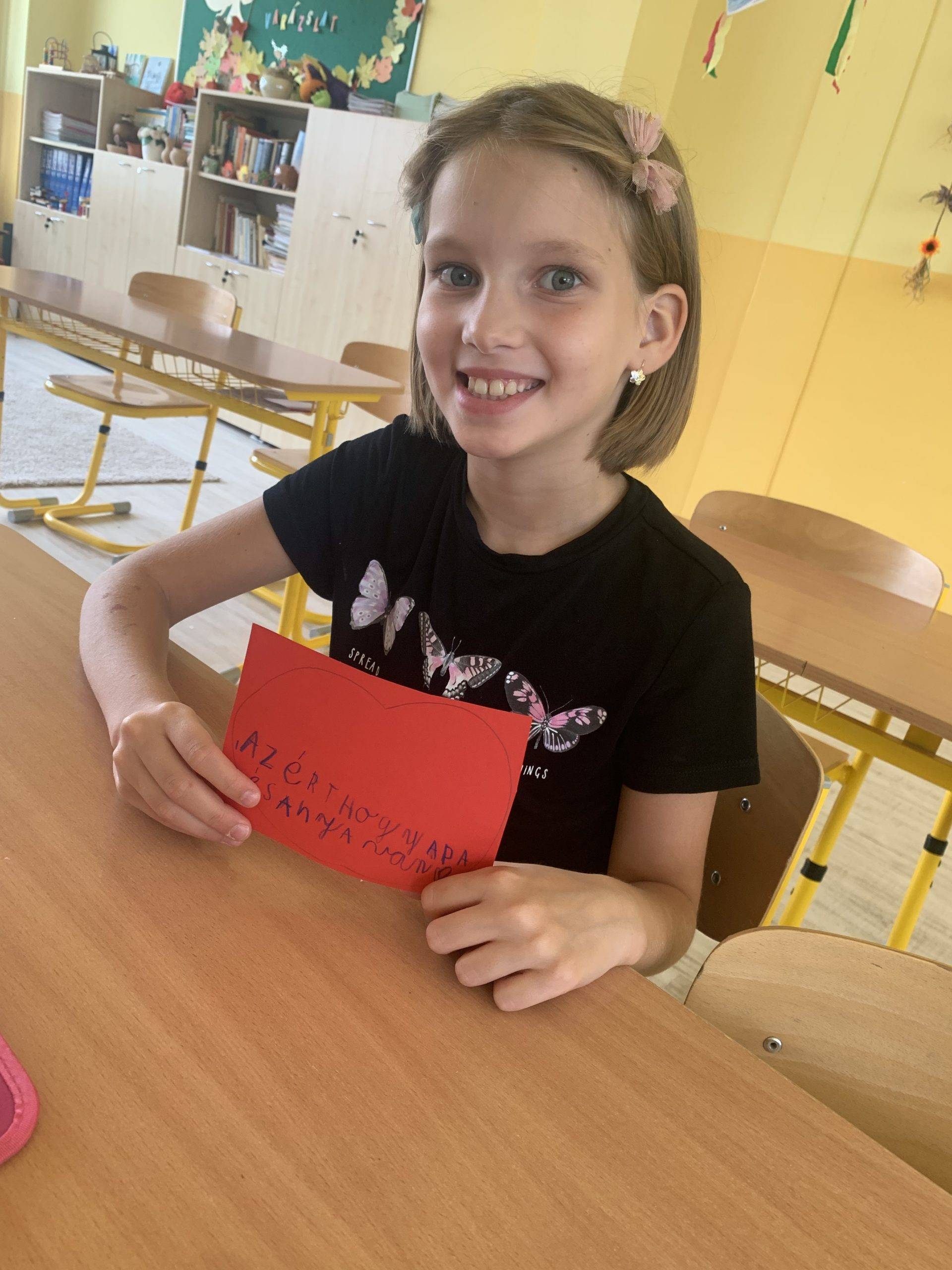 A 2.B osztály diákjai kíváncsisággal várták a Hála-óra első foglalkozását. A Linka és a csengettyűk c. mese meghallgatása után lelkesedve osztották meg, hogy miért hálásak. Végül egy-egy almácskára mindenki leírta hálájának okát és feldíszíttetük a saját kis hála-fánkat.