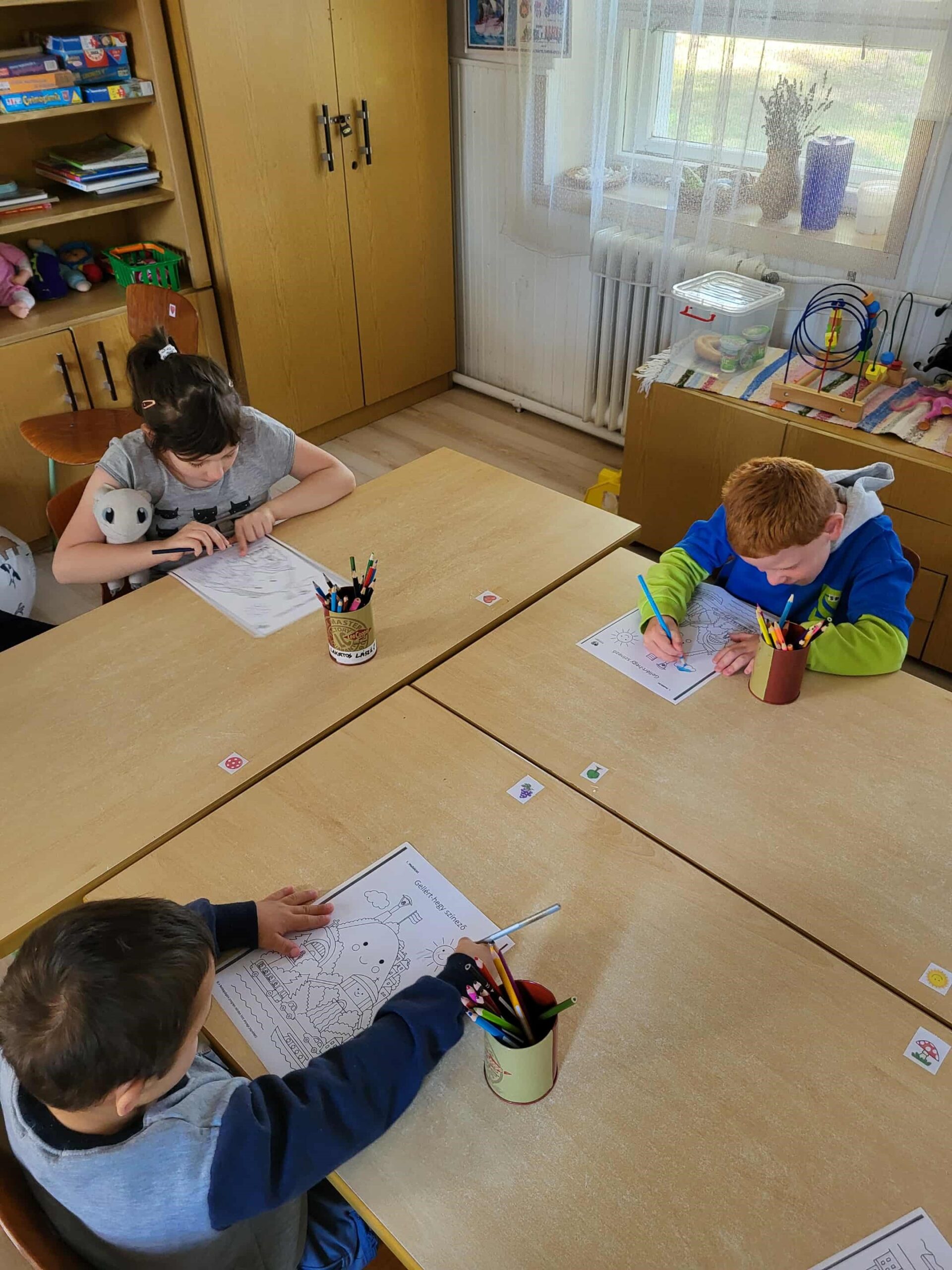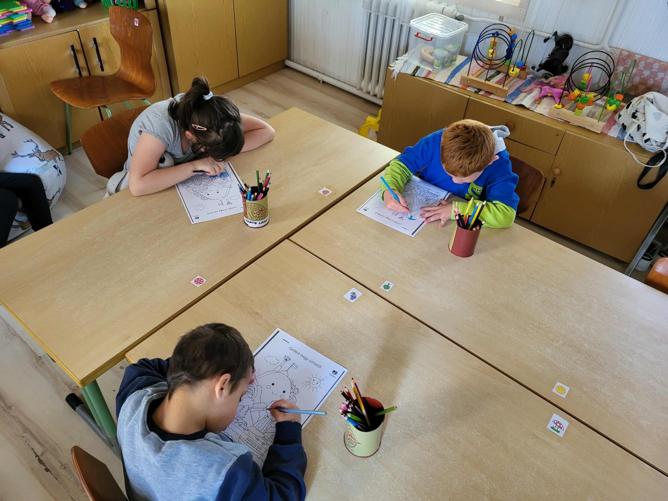 Új év, új kihívás. A 12. osztályom után 1-ső osztályt kaptam. A szeptemberi Boldogságórát az 1. osztályomban tartottam, kommunikáció óra keretében, értelmileg akadályozott gyermekek részére. A foglalkozásokat általában Bagdi Bella dalával kezdtük, ezzel hangolódtunk rá a témára. Majd elkezdtük játszani a Hálajátékot, ahol a legkedveltebb mondatunk a ,,De jó meleg ez a pulcsi,, volt. Itt hálát adtunk hogy van meleg ruhánk. Majd folytatásként megnéztük közösen Bartos Erikától A megsértődött a Gellért hegy című mesét ami után megbeszéltük a hozzá tartozó kérdéseket, de talán jobban várták a kicsik a meséhez tartozó színezőt amit tudásukhoz mérten ki is színeztek.