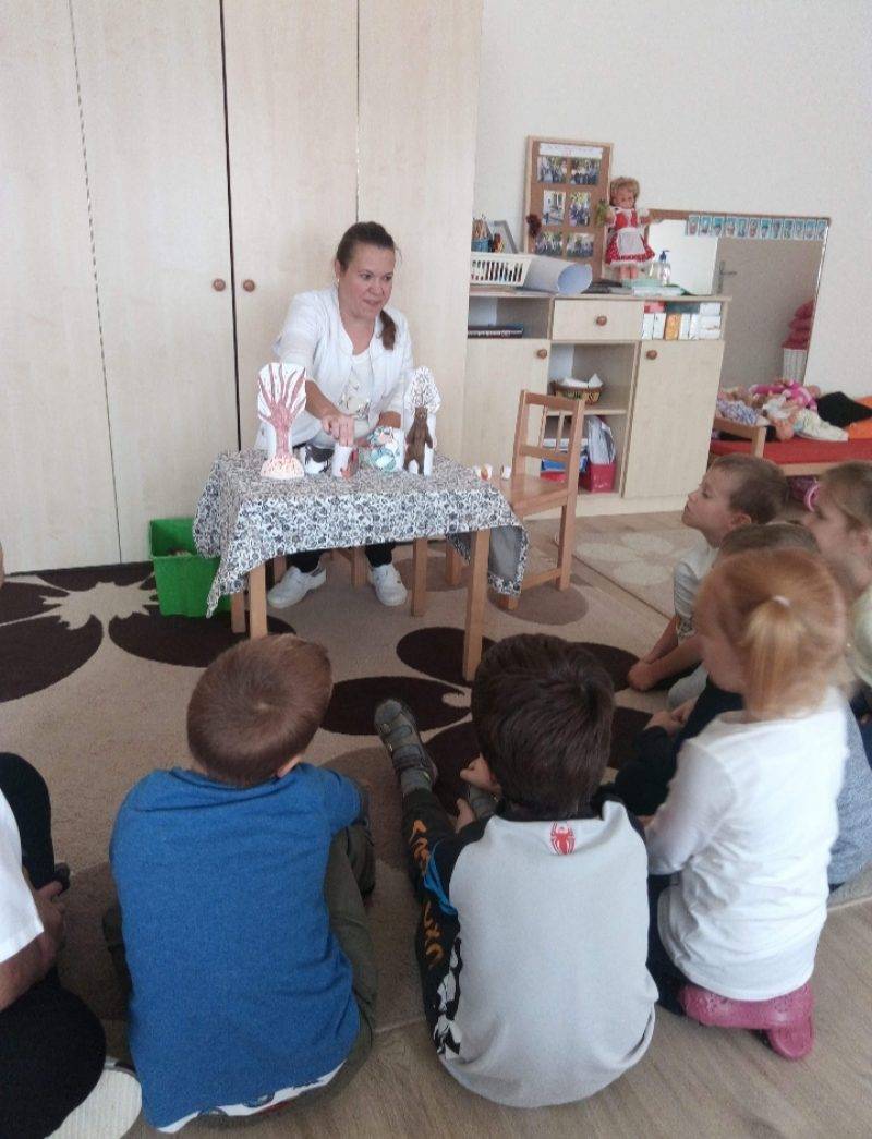 • Mivel a hónapban az őszi gyümölcsök volt az egyik témakör az Alma C. mesét átalakítottam úgy, hogy az állatok hálásak legyenek a medvének. A gyerekek nagyon beleélték magukat az előadásban, amit bábozással színesítettem.