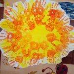 Hálásak vagyunk a Napocskának az életadó napsütésért, ezért a csoportunkban elkészítettük a saját Napocskánkat kéznyomatok segítségével, és eljátszottuk A három pillangó című mesét, amiben hálát adtak a pillangók is, hogy kisütött a Nap, és megszárította a szárnyukat, így újra tudtak repkedni a mezőn. Mi is így adunk hálát minden nap, ha süt a Napocska, és tudunk az udvaron játszani.