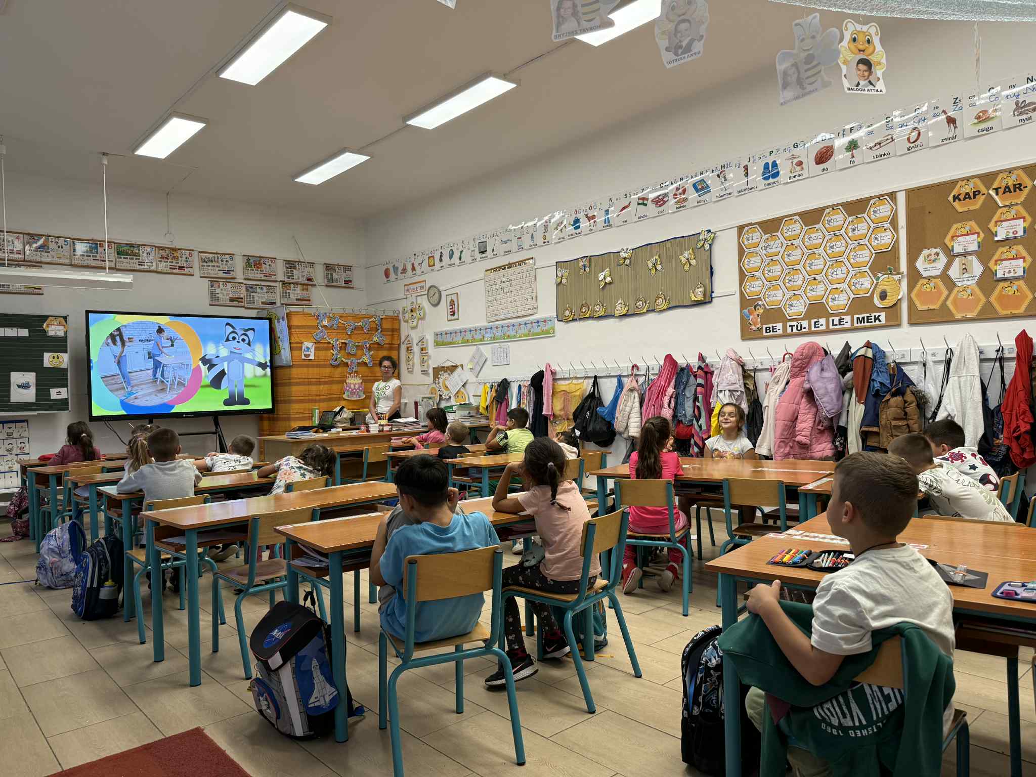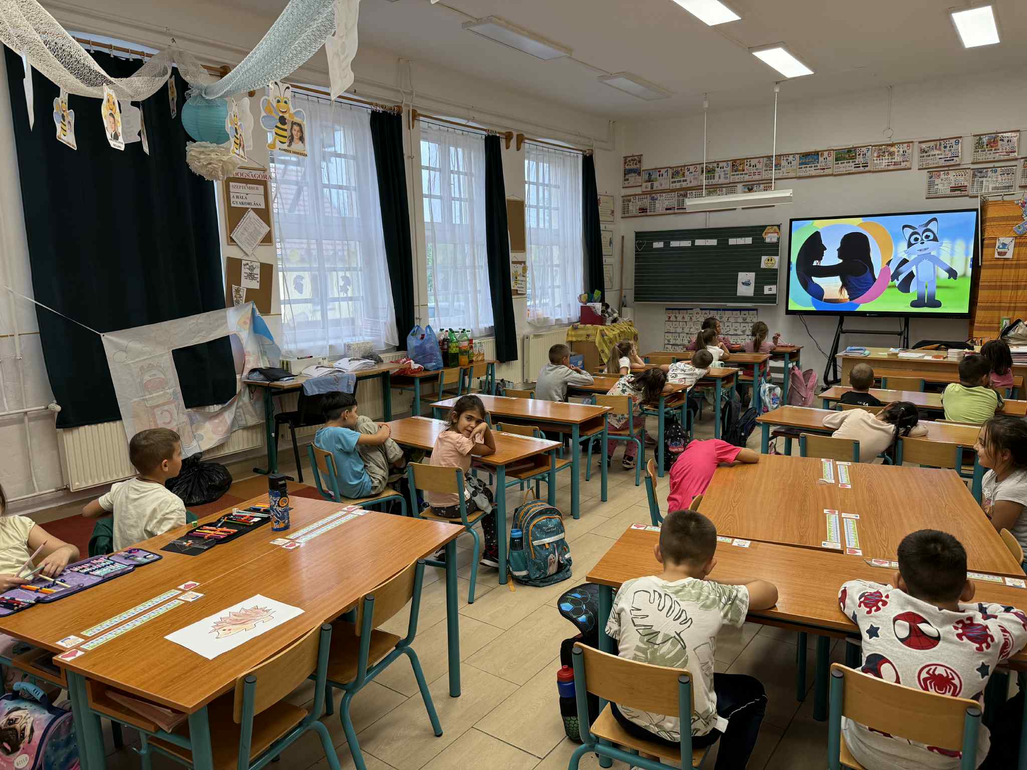 Az 1. osztályos napközisekkel megtartottuk a boldogság órát, amelyen megnéztük a videót a háláról, meghallgattuk a hónap dalát, majd megbeszéltük, hogy ki mire gondolt a zenehallgatás közben. Utána a szőnyegen egy varázskavics segítségével minden gyermek elmondhatta, hogy miért hálás és kinek, illetve kinek és miért mond köszönetet. A gyerekek nagyon élvezték és jó hangulatban telt el az első boldogságóránk.