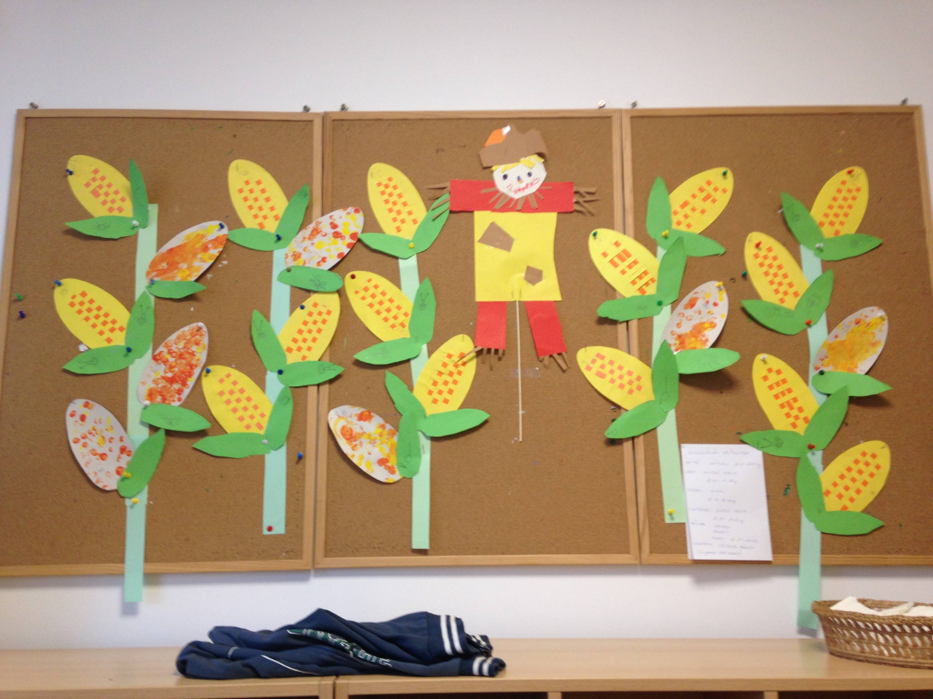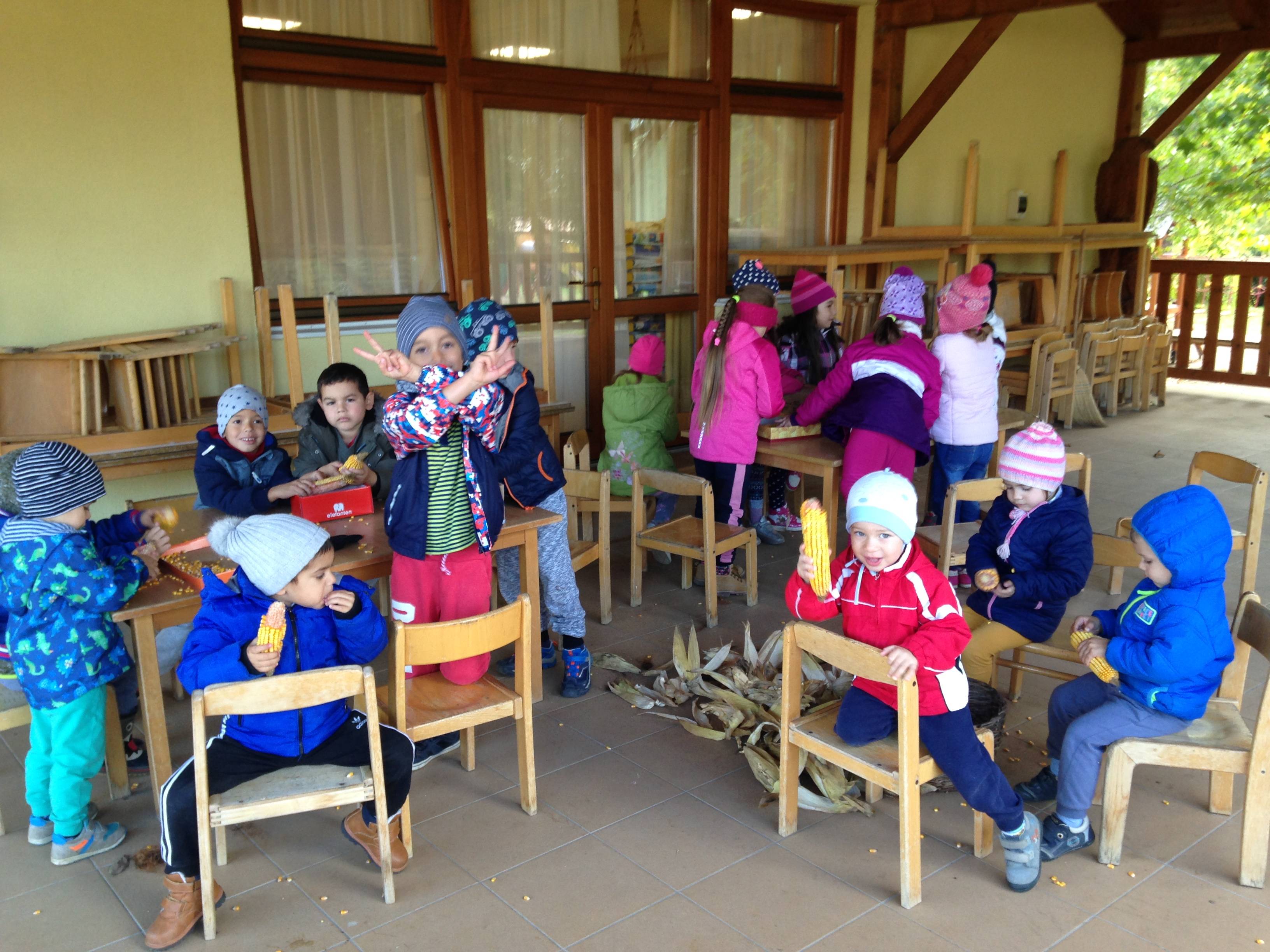 Készítettünk papírból kukoricát és kukoricacsövet morzsoltunk. A szemekkel játszottunk és azt terveztük, hogy a következő hónapban, az állatok világnapja alkalmából, elvisszük azoknak az állatkáknak, akik ezzel táplálkoznak.