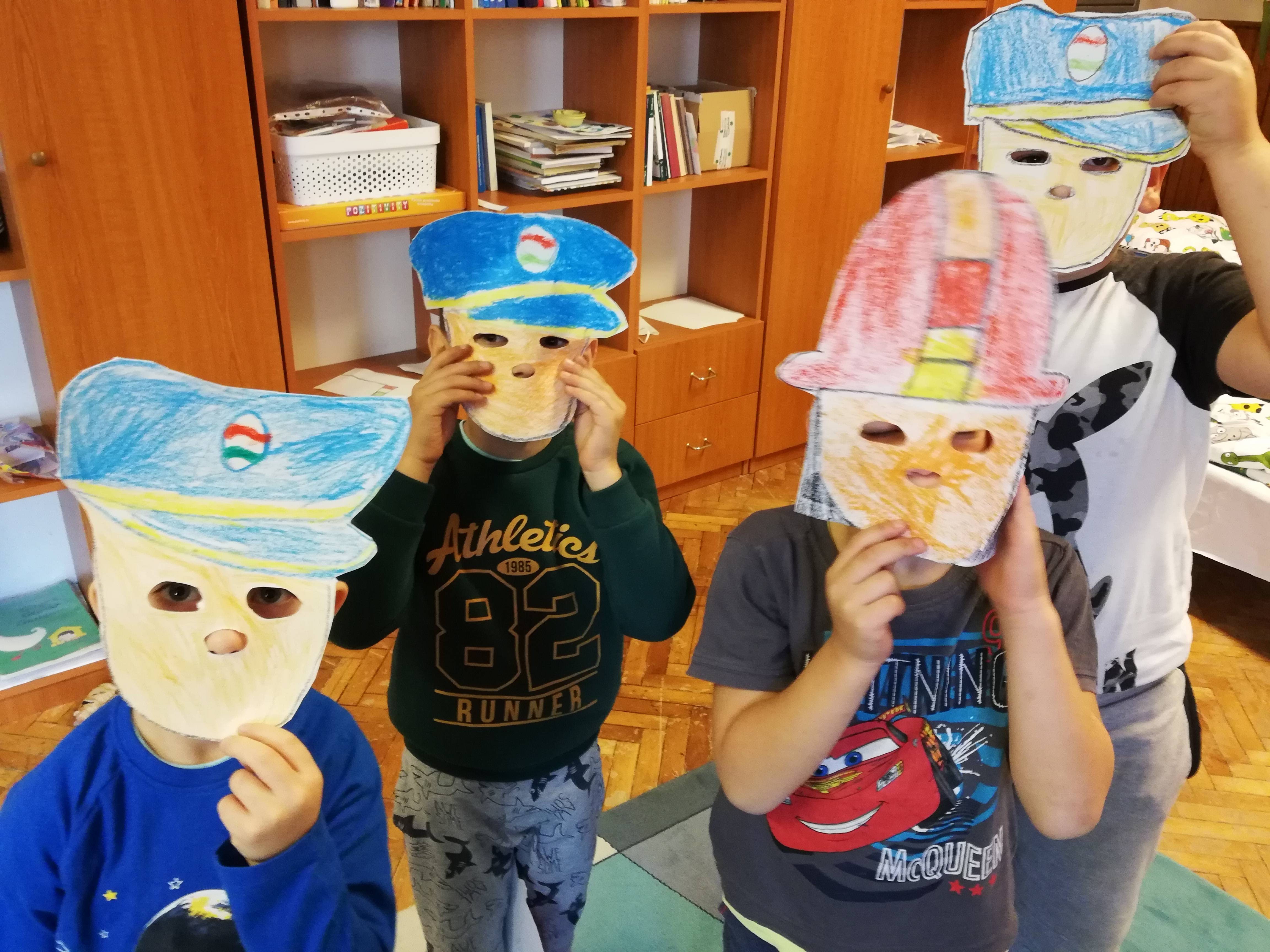 A feladatok közül a Hála álarcot választottuk, a mindennapi életből vett hősökre fókuszálva. Többen is felsorolásra kerültek, de nálunk a tűzoltó és a rendőr lett a befutó! 🙂