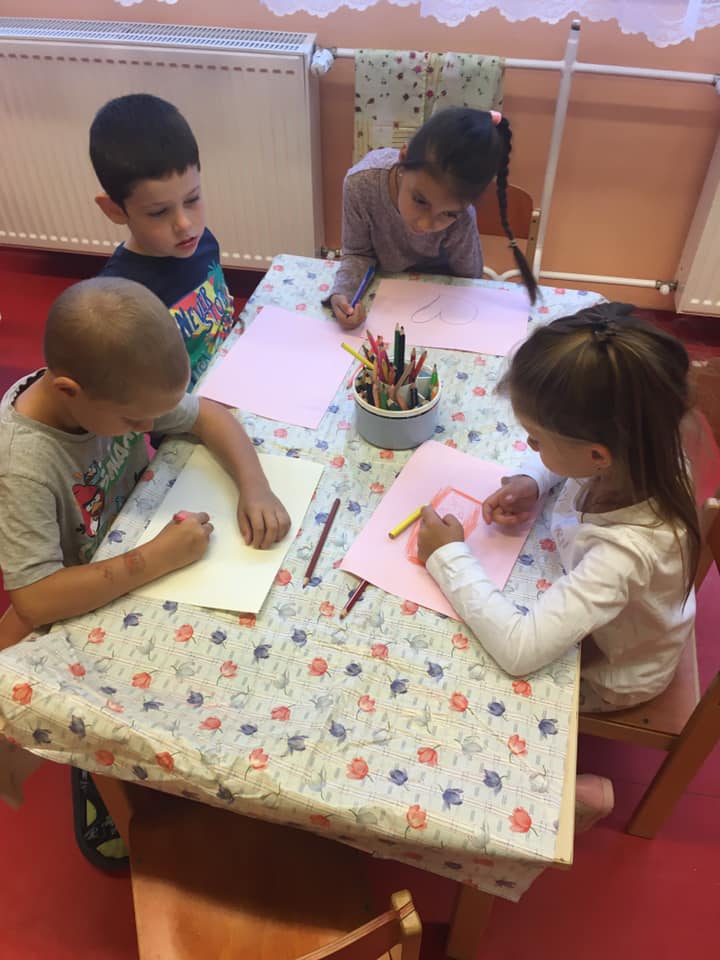 A gyermekek a mai napon, resztoratív-körben hallgatták meg Bezzeg Andrea: Hálafa-története című meséjét. A meghitt mesehallgatás után, beszélgetést kezdeményeztek a gyermekek, mellyel a jó és rossz cselekedetek jelentéstartalmát erősítettük meg együtt, közösen. Kitértünk arra is, hogy számunkra a fa példaértékű cselekedete hőssé tette őt számunkra is. Így került átvezetésre a javasolt vizuális tevékenység. A gyermekekkel példákat elevenítettünk fel a már ismert mesékből, így választhatták ki, hogy ki milyen szuperhős lenne, ezt persze titokban kellett, hogy tartsák! A gyermekek különféle technikák közül választhattak, szabadjára engedhették a fantáziájukat, többnyire kedvelt volt: a rajzolás zsírkrétával, ceruzával, és a vágás ollóval.